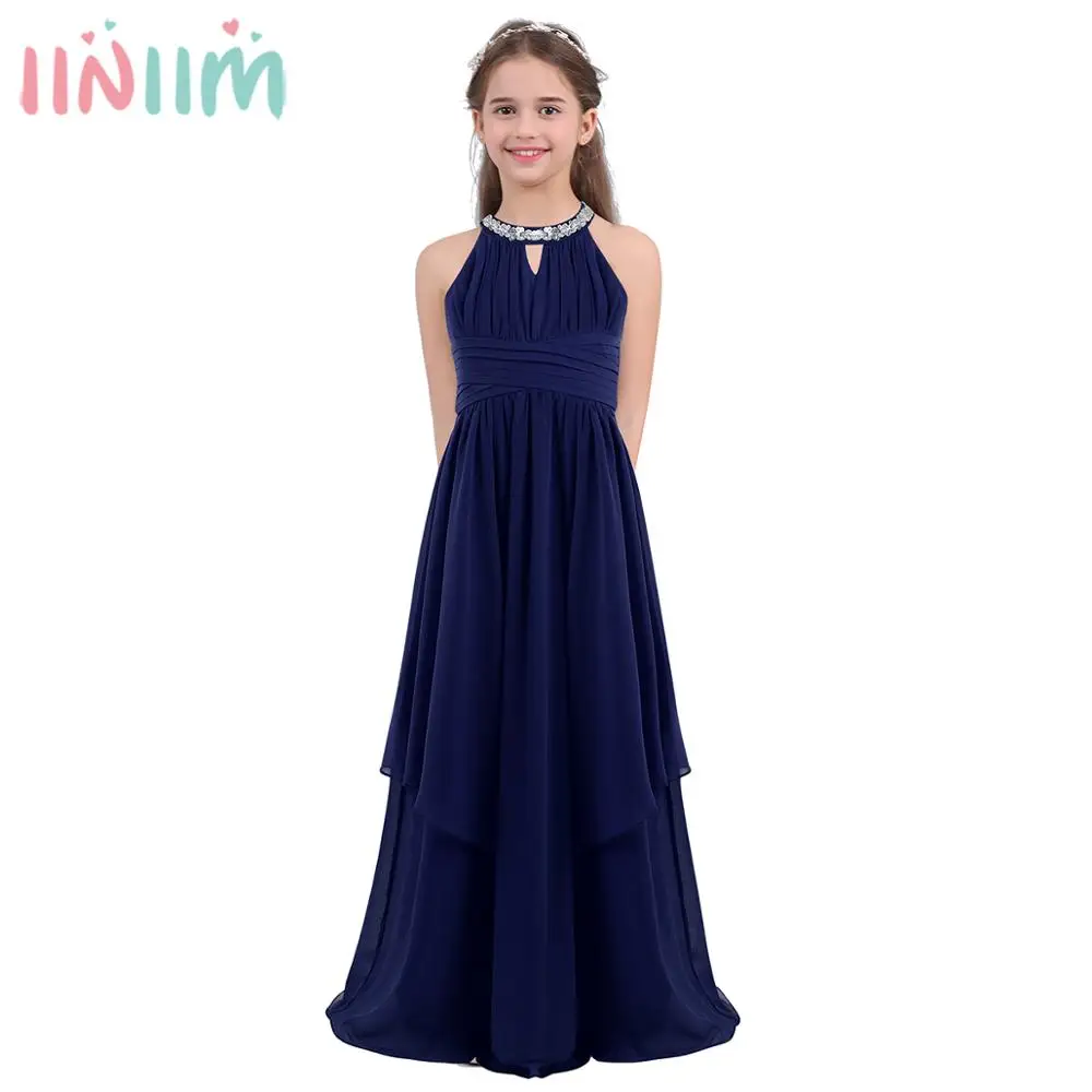 Детское элегантное платье в цветочек для девочек, шифоновое платье с блестками и лямкой на шее для подростков, вечерние костюмы для малышей