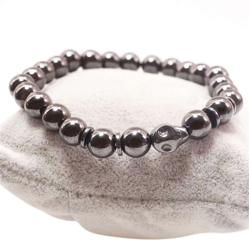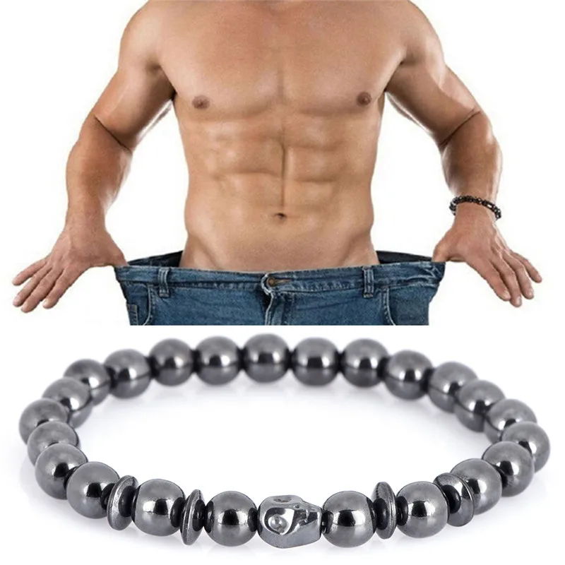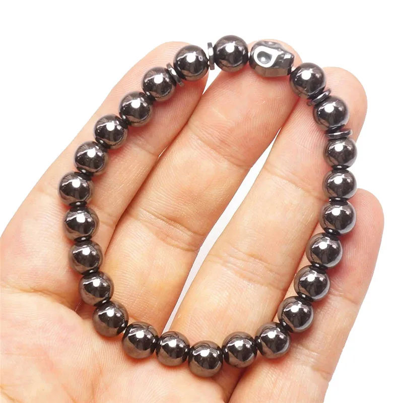 Браслет для магнитной терапии с изображением черепа, черного камня, медицинский биомагнетизм, магнит для уменьшения веса, украшение для рук, потеря веса, для мужчин и женщин