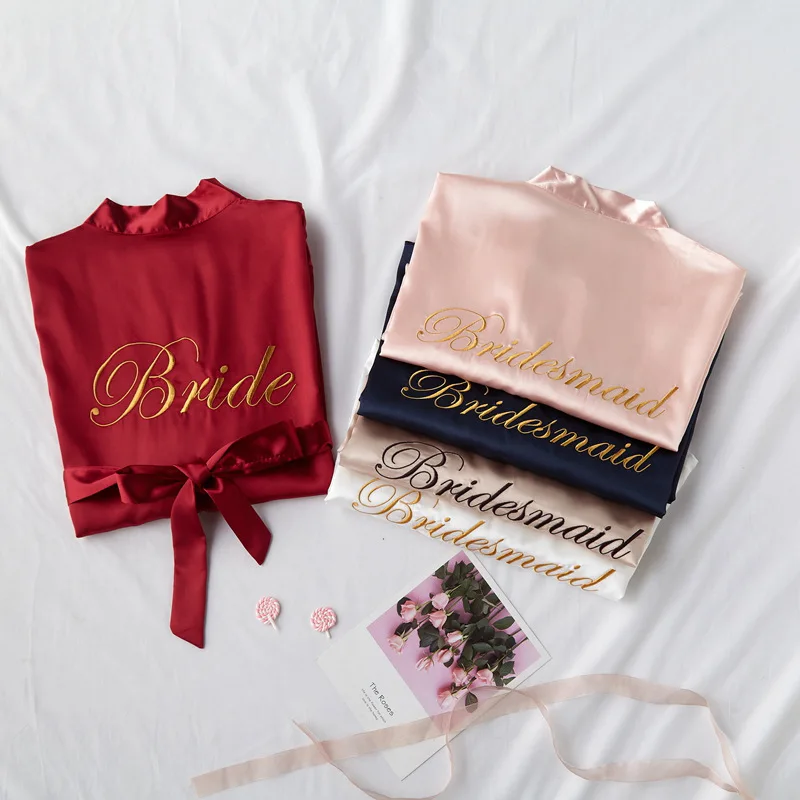 Халат-кимоно Женский Свадебный с вышивкой, искусственный шелк, ночная рубашка для невесты и подружки невесты, пикантная одежда для сна