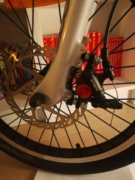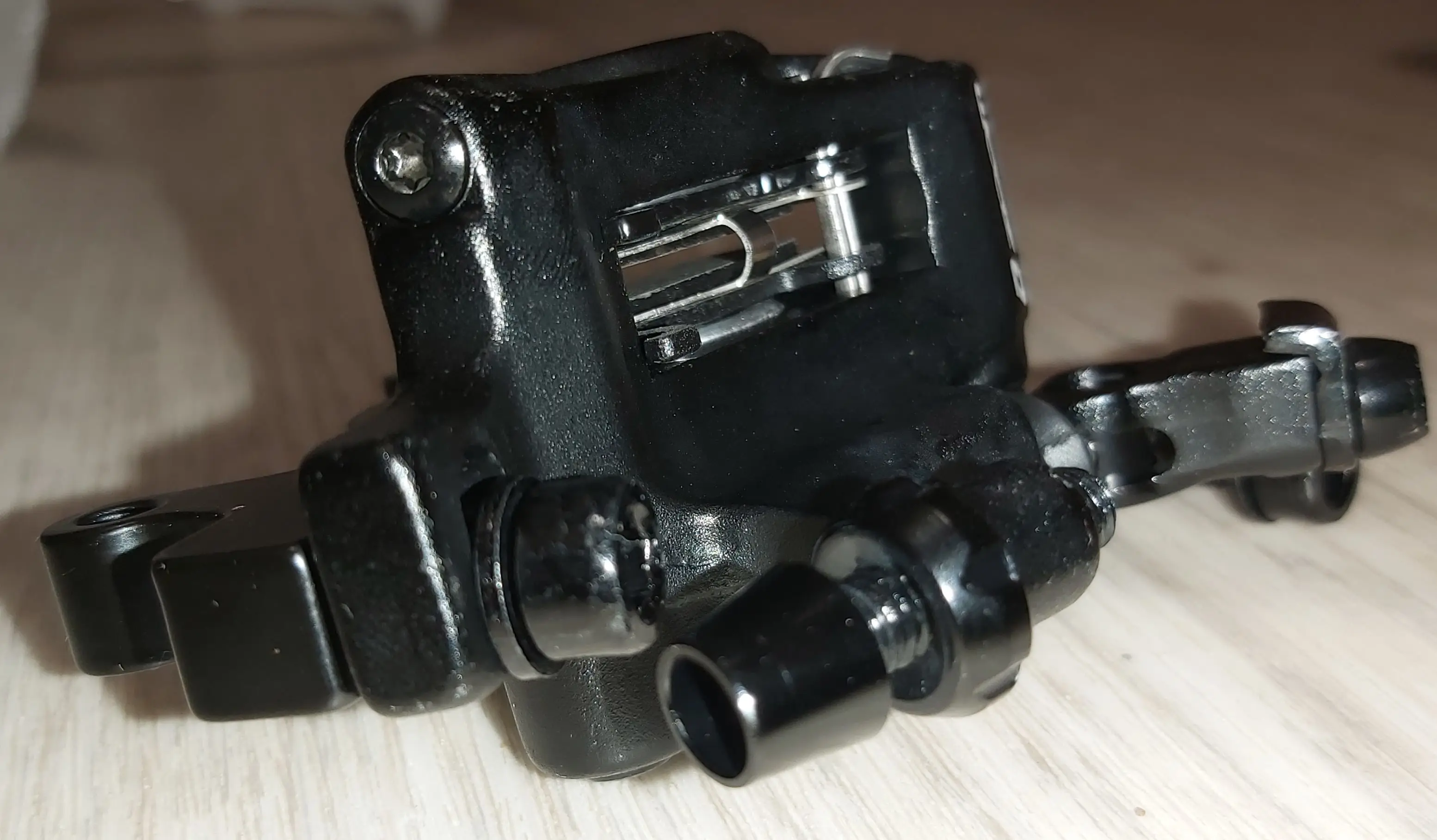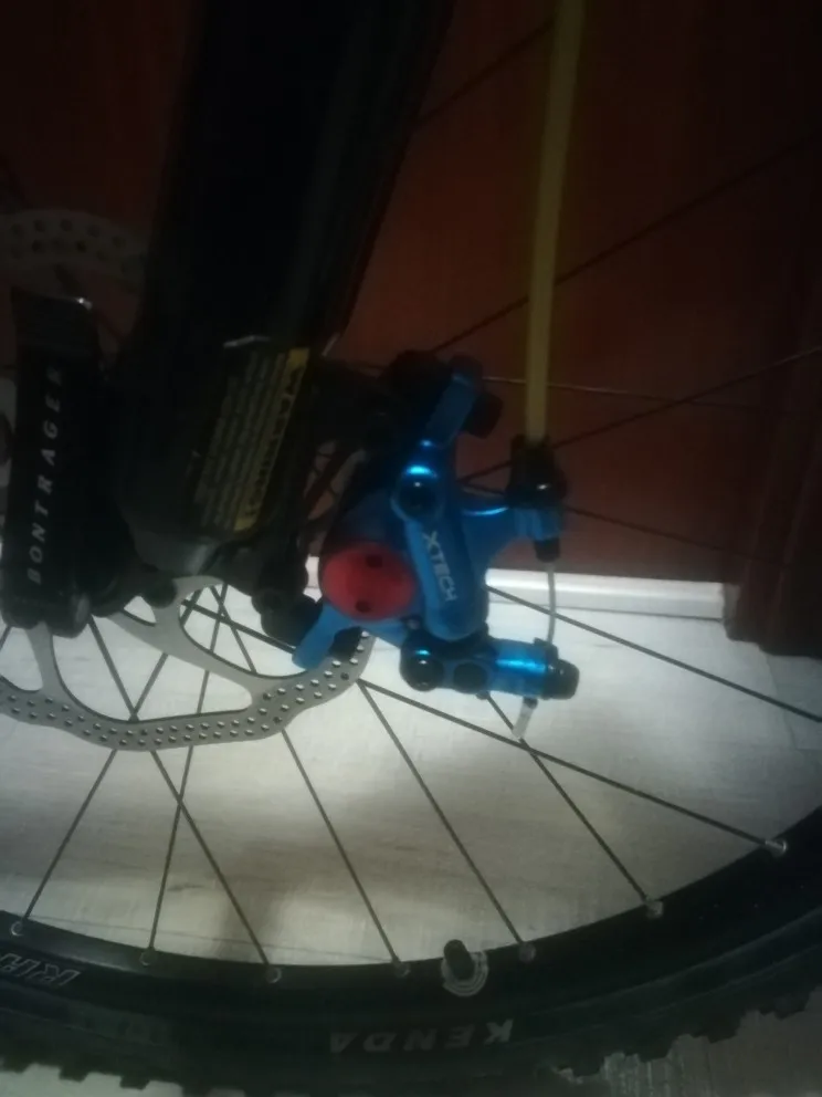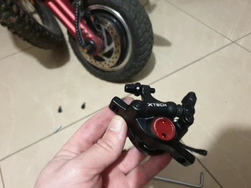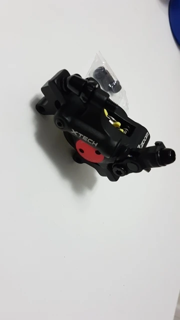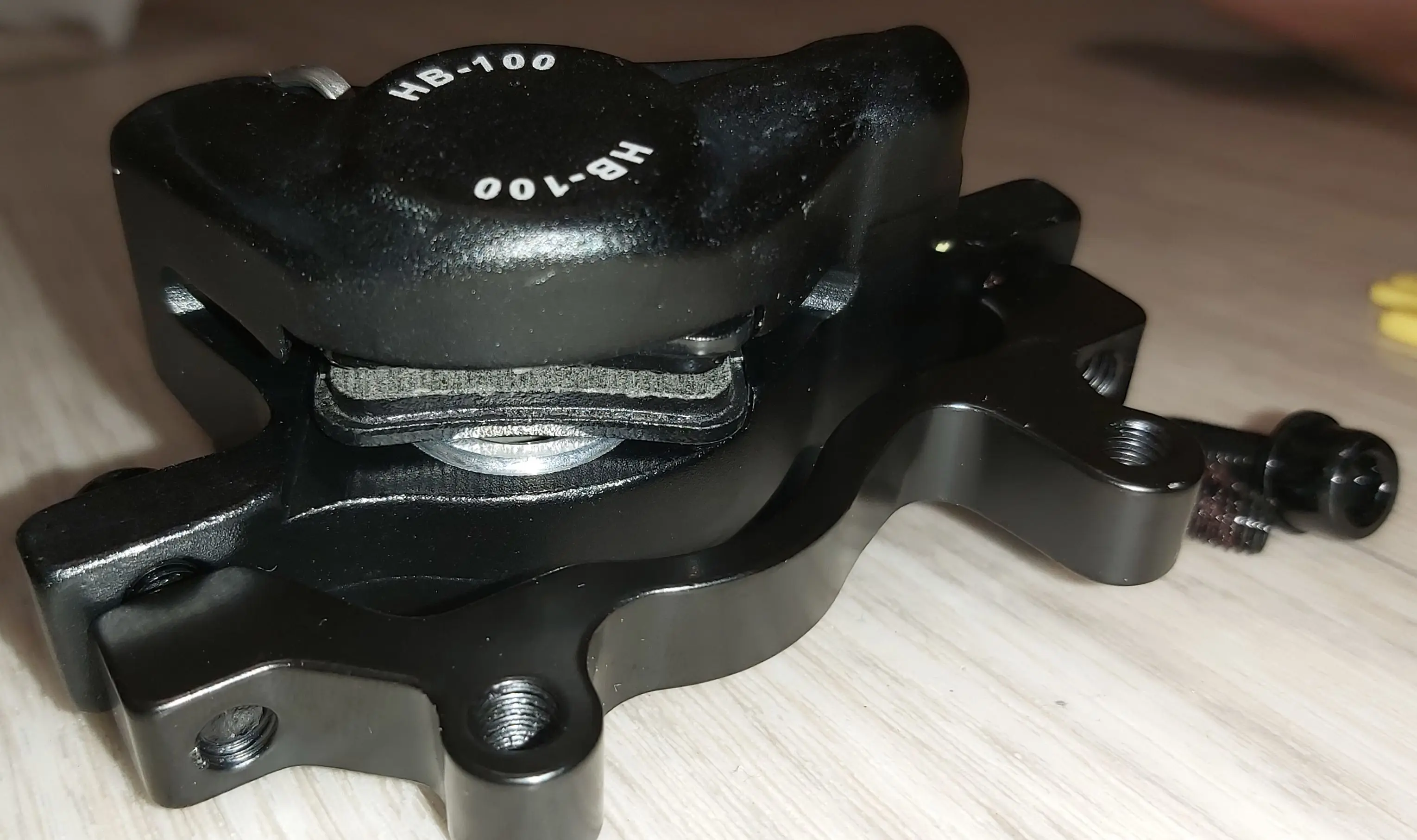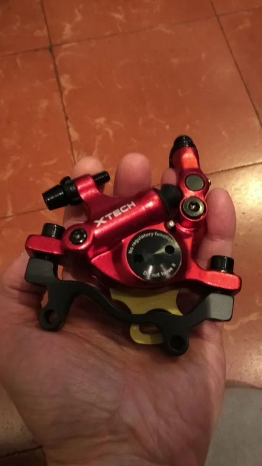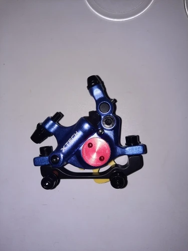 Я поместил его в 203 мм ротор. Тормоз идет хорошо, тормоз на 35% лучше, чем механический тормоз. Он не такой мягкий, как гидравлический тормоз на ручке руля. Этот имеет поршень в том же зажиме, регулируется и одновременно затягивается на 2 таблетки, не так как механик один нажимает, а другой выступает в качестве бампера. За 12 евро стоит того.