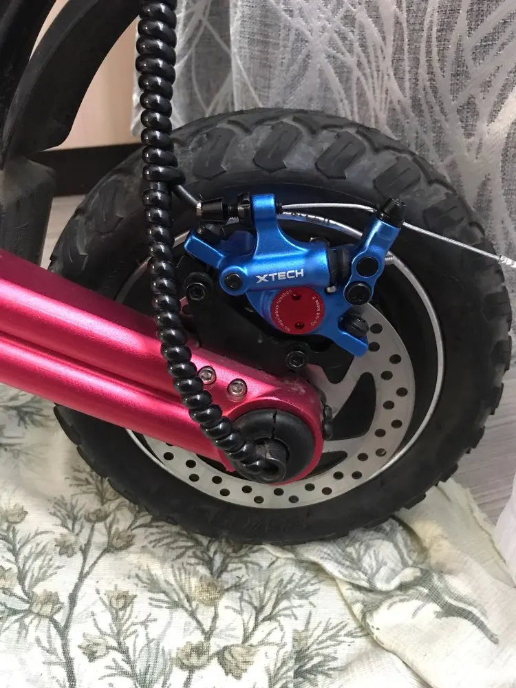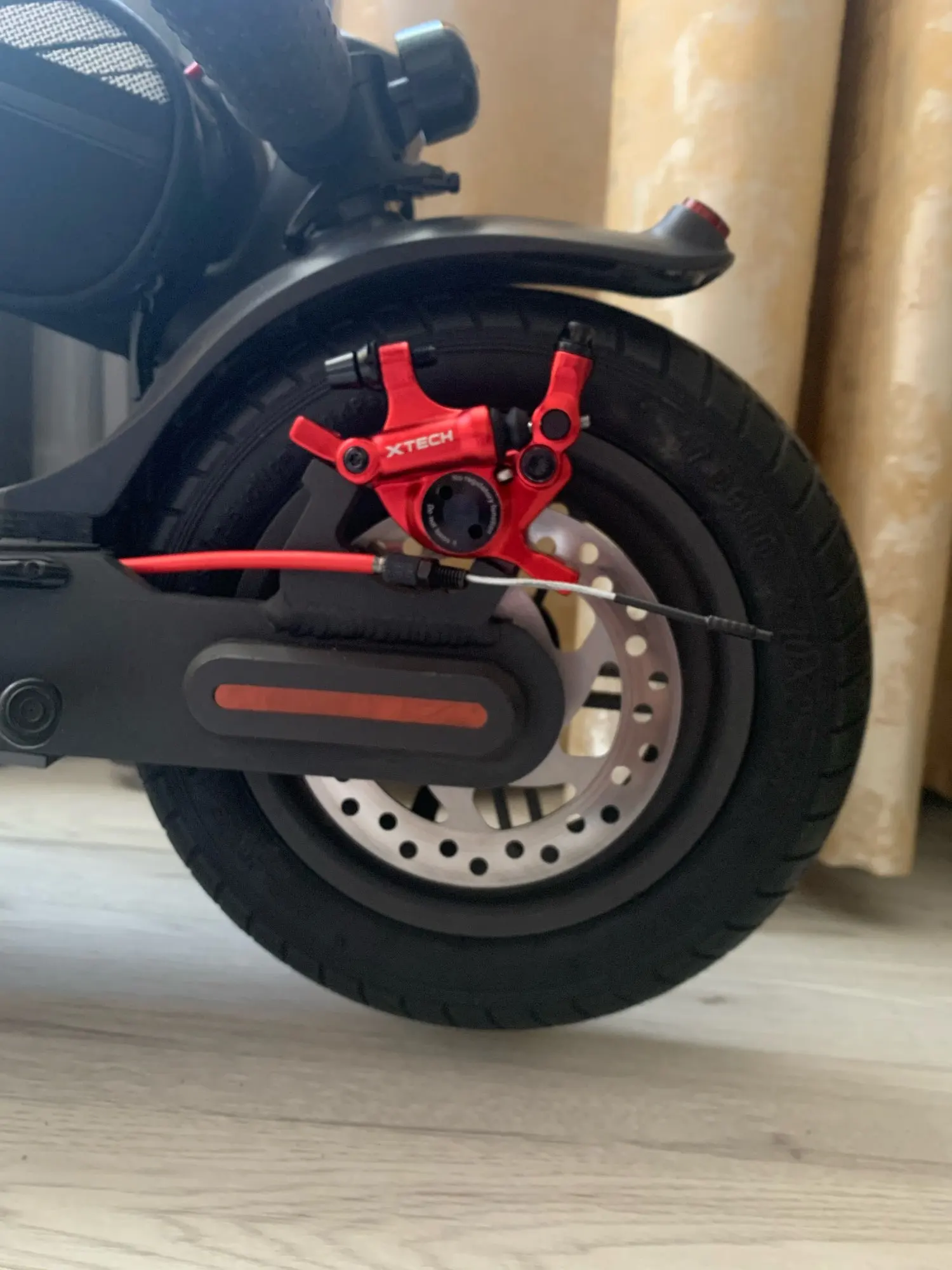 Этот полугидравлический тормоз тормозит намного лучше, чем у стандартного M365/pro, да, вам нужен специальный адаптер для скутера, и настоятельно рекомендуется также заменить тормозной диск на больший диаметр. Разница между моделью для переднего или заднего велосипеда является адаптером, который он несет, сам тормоз такой же.