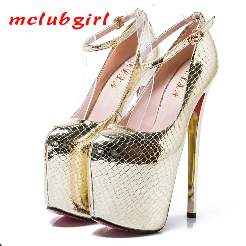 Mclubgirlтуфли на очень высоком каблуке 20 см золотистого и серебристого цвета женские свадебные туфли-лодочки со змеиным узором пикантные туфли для ночных клубов размера плюс MJL