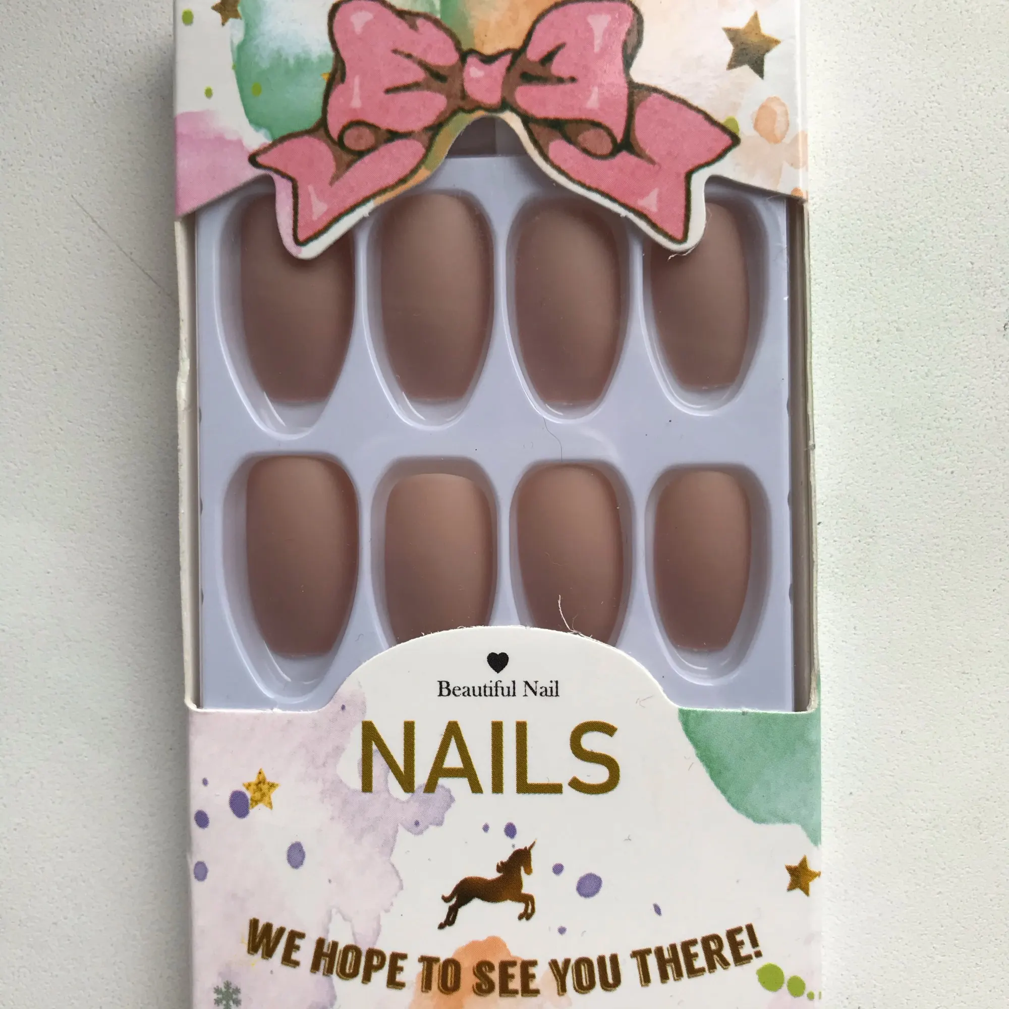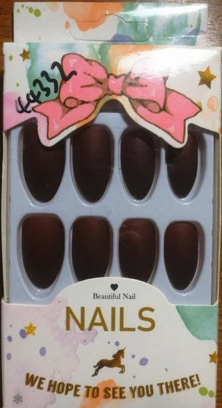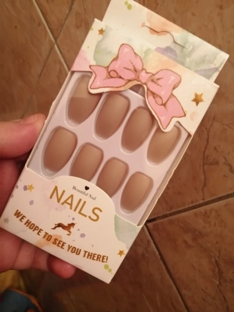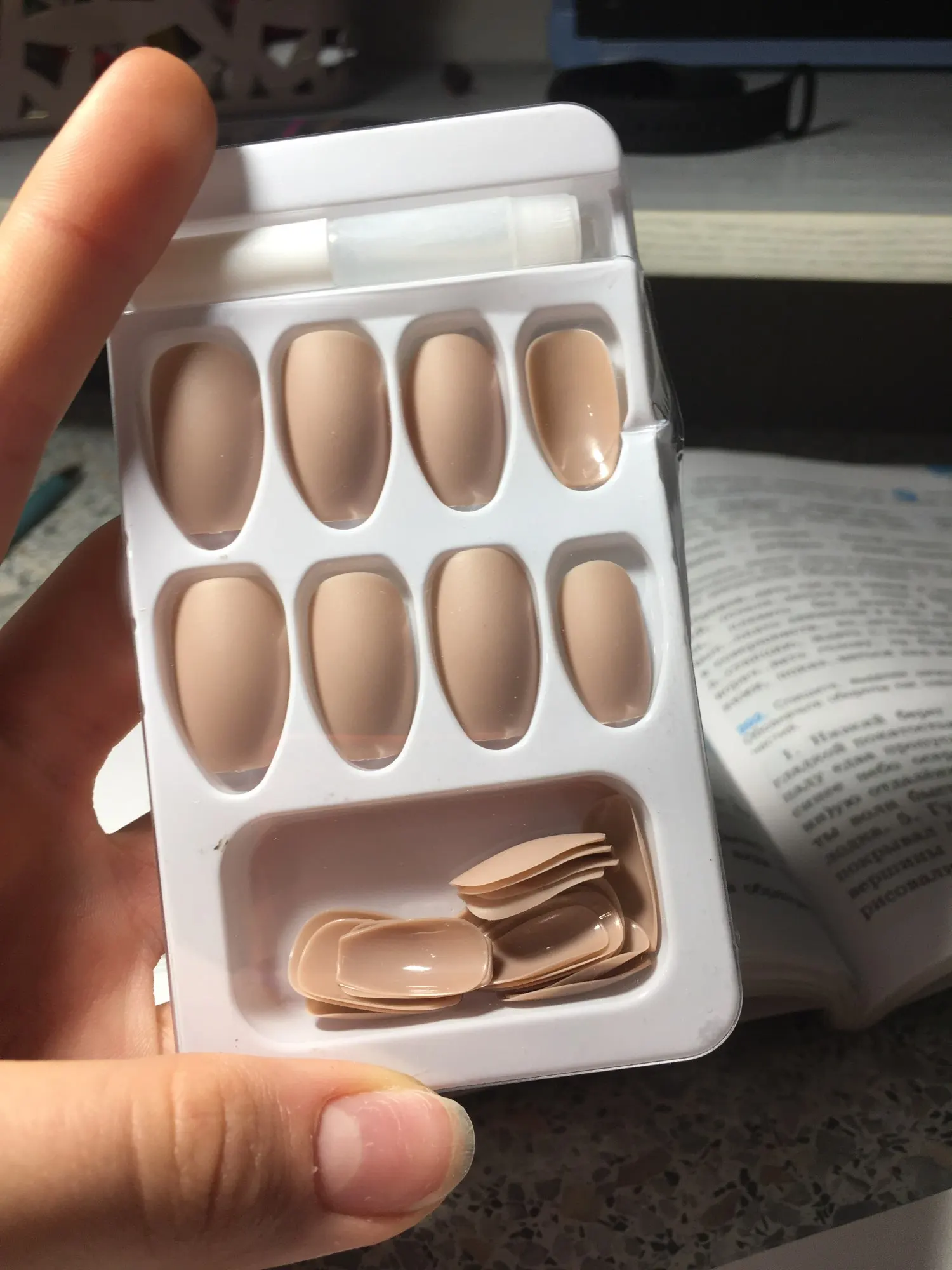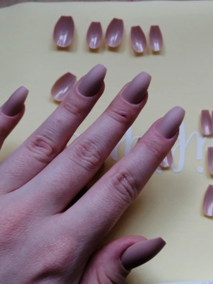 Ногти матовые, тонкие, в комплекте с клеем, очень понравились.Закажу ещё. Доставка в срок, все отслеживалось, аккуратно упаковано. Спасибо продавцу.