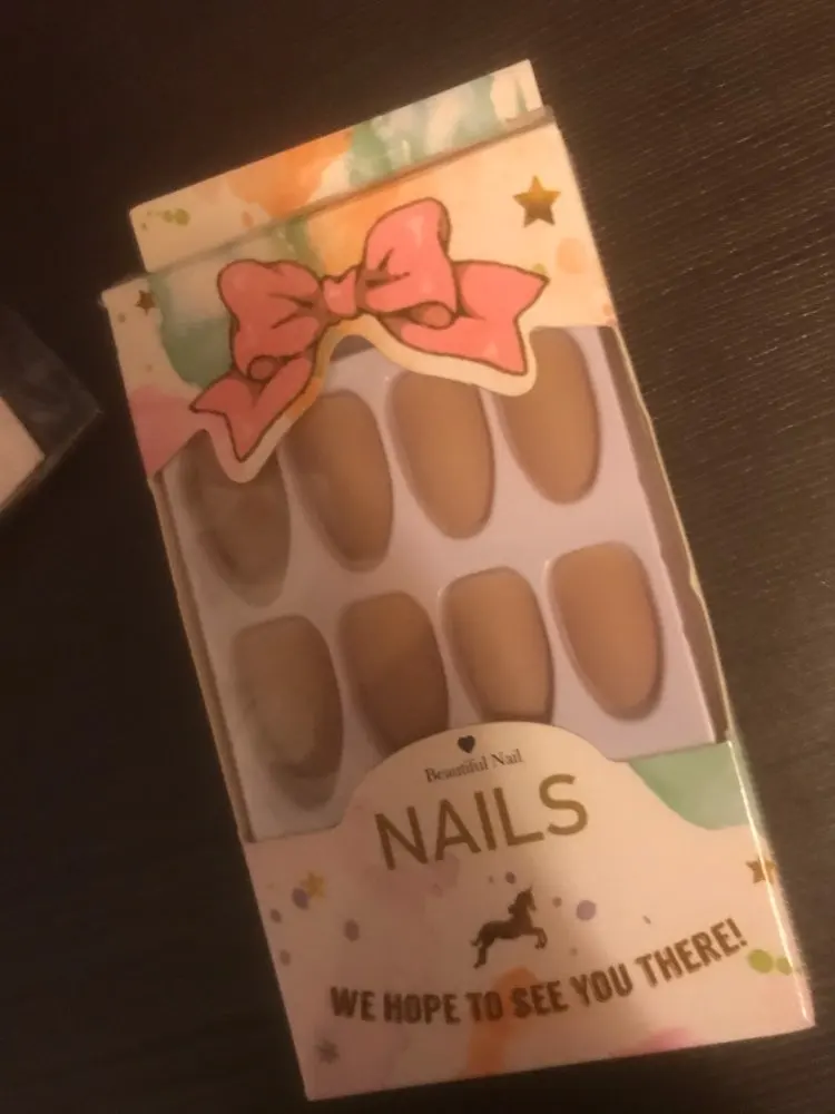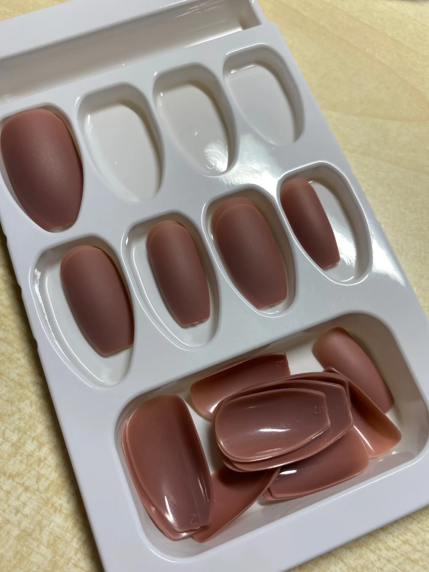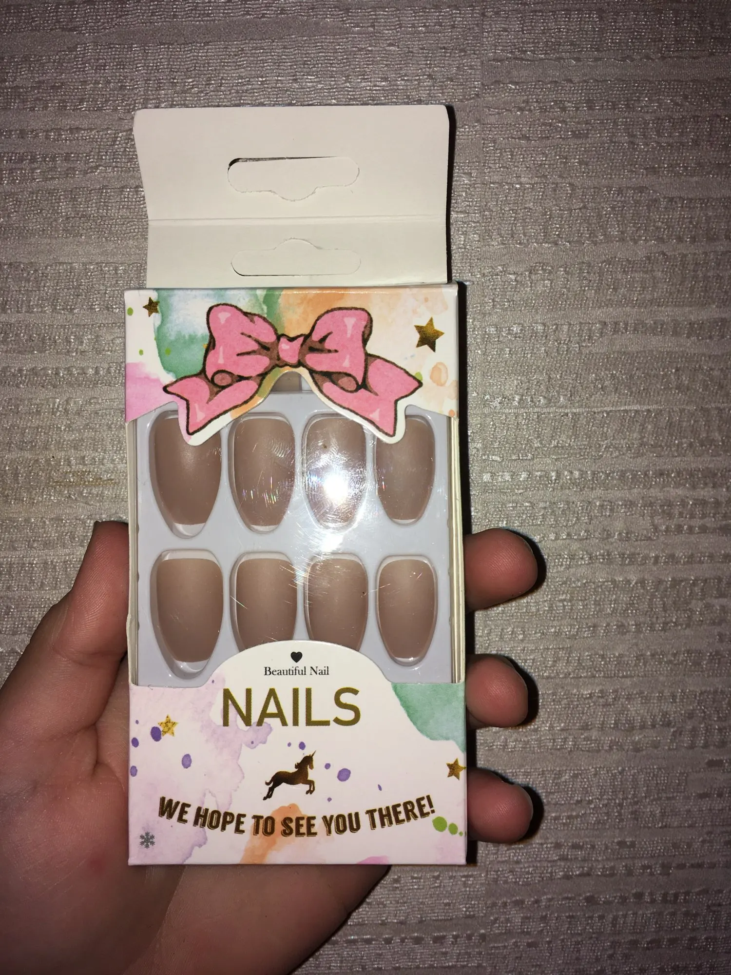 Ногти матовые, тонкие, в комплекте с клеем, очень понравились.Закажу ещё. Доставка в срок, все отслеживалось, аккуратно упаковано. Спасибо продавцу.