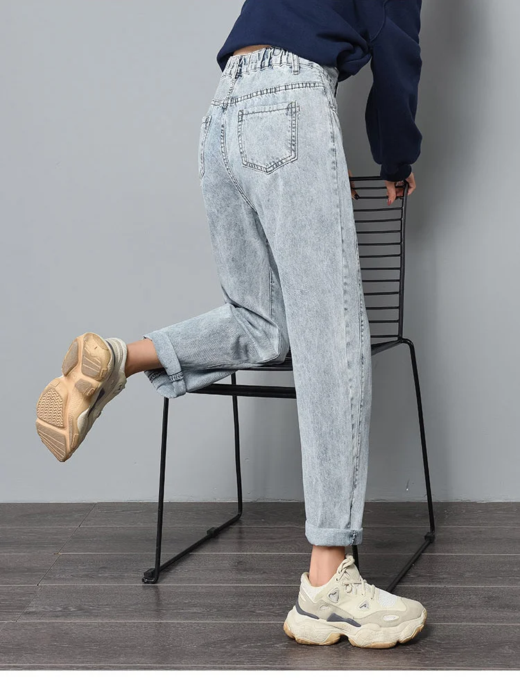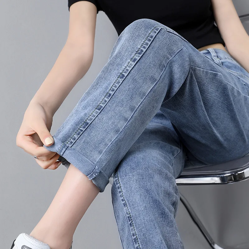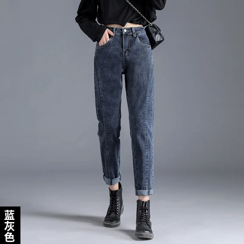 Джинсы женские прямые, эластичные, синие, с высокой талией, размера плюс, горячая распродажа