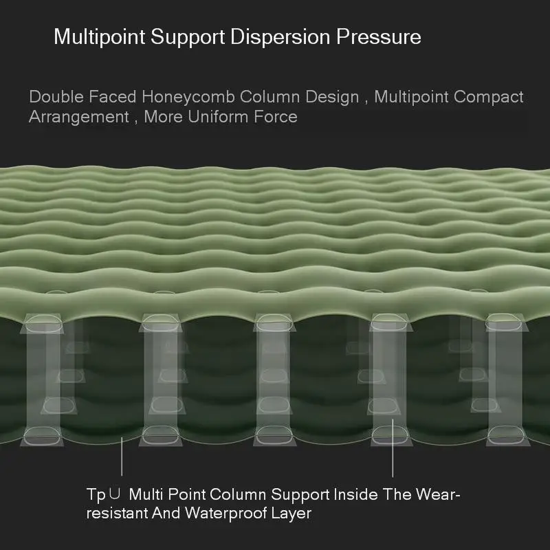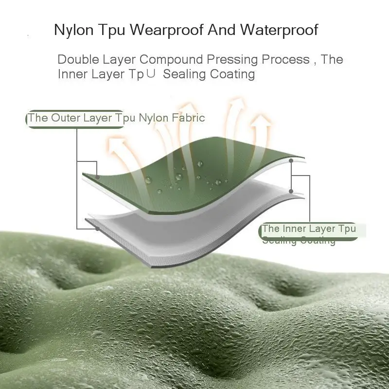 Швы матраса отличаются от 1 мм до 4 мм, что влияет на Долговечность Матраса, означает, что конструкция не является адекватной или, по крайней мере, не соответствует тому, что можно ожидать от матраса 85 долларов США. Для 20 долларов США приемлема разница в качестве швов, но для матраса на 85 долларов США я хотел бы ожидать больше. Я задал пояснения относительно материала, который описан несколько неясным, это ответ, который я получил от Naturehike: «Фабрика описана так: внешний слой из нейлоновой ткани ТПУ, внутренний слой термопластичного уплотнительного покрытия"