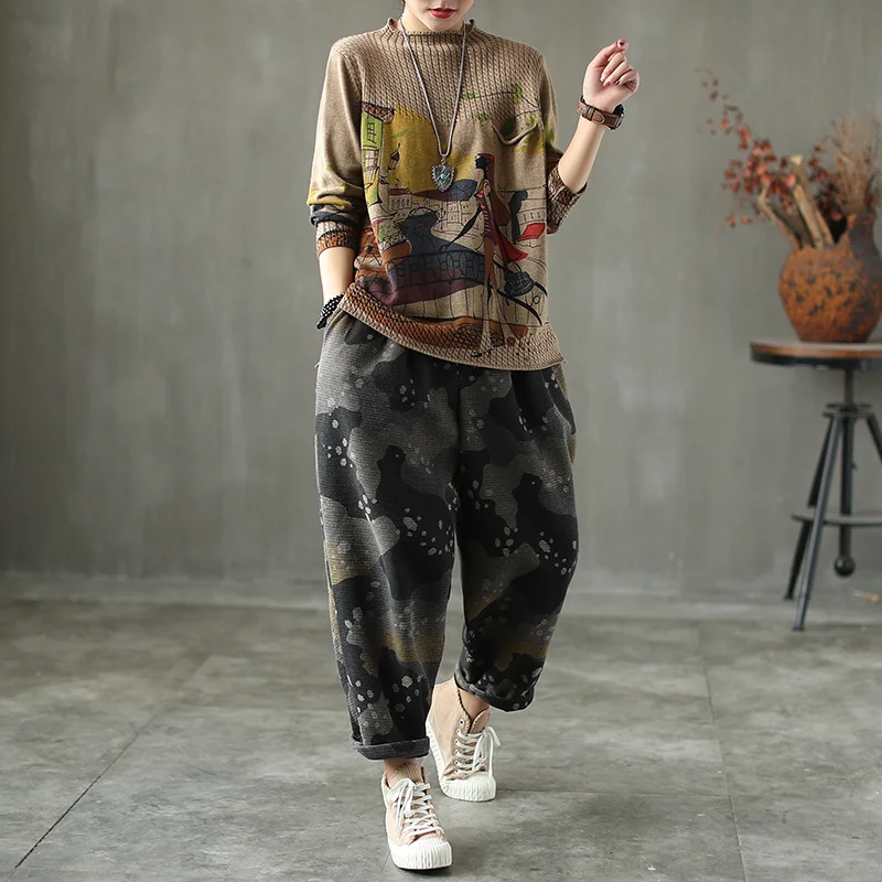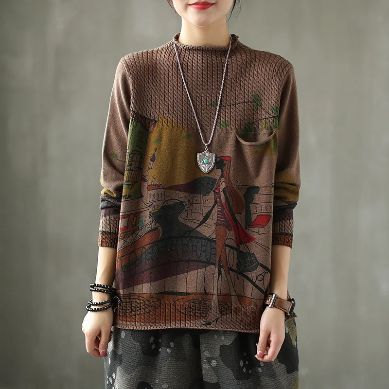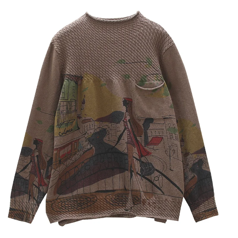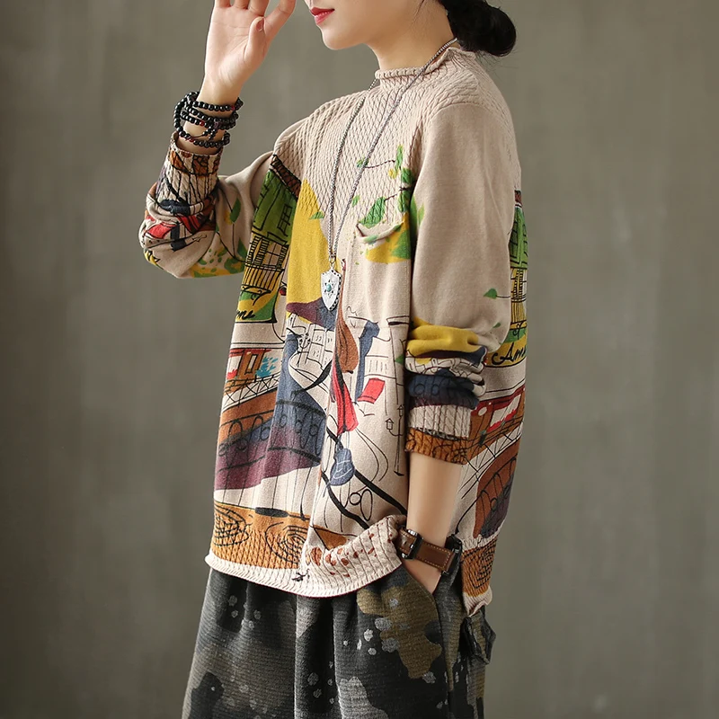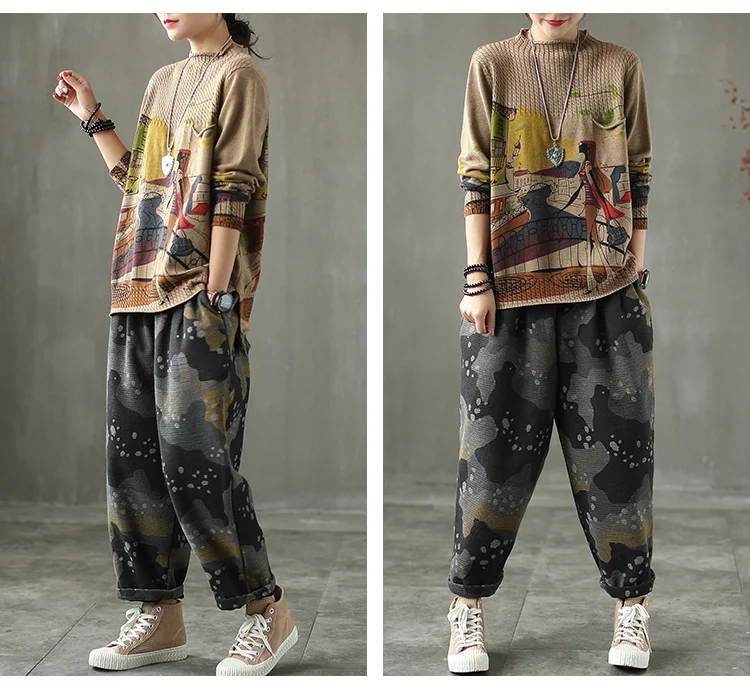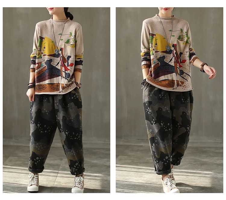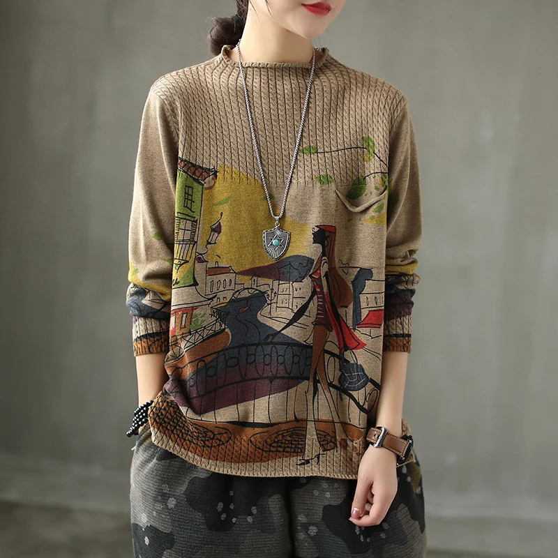 Женский винтажный свитер с мультяшным принтом, свободные футболки оверсайз, трикотажные топы, Женский Зимний пуловер 2021, трикотажная одежда Z3