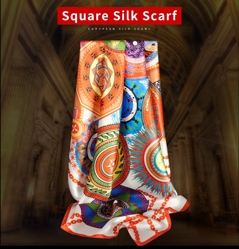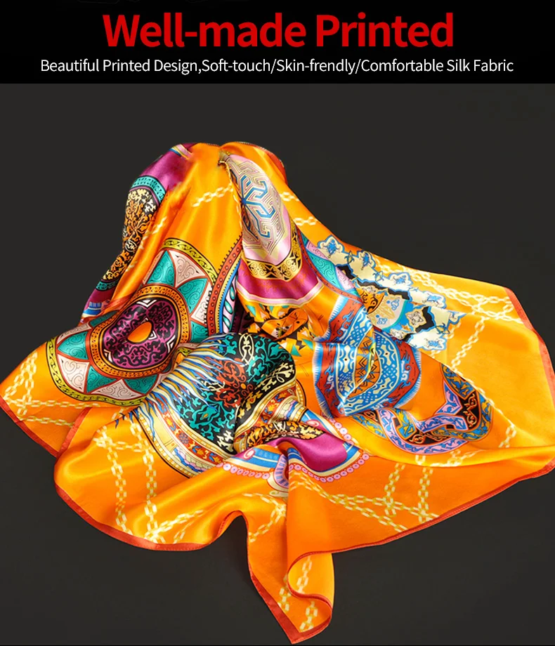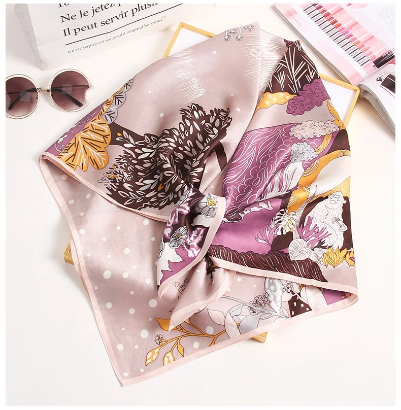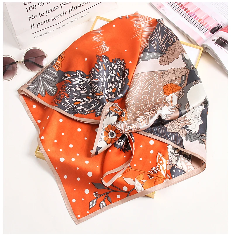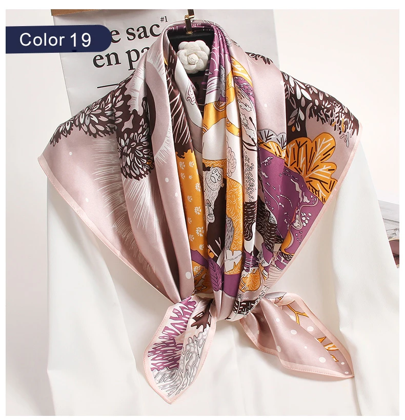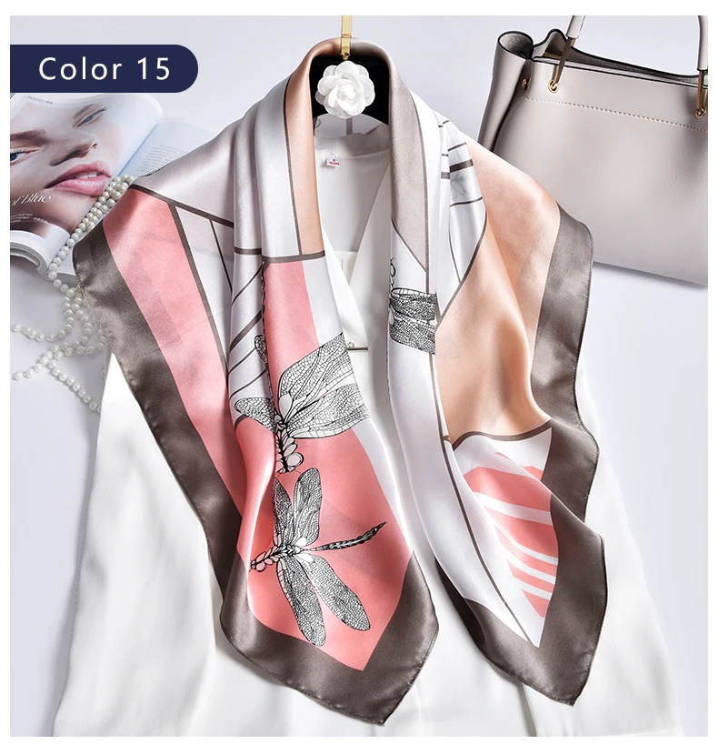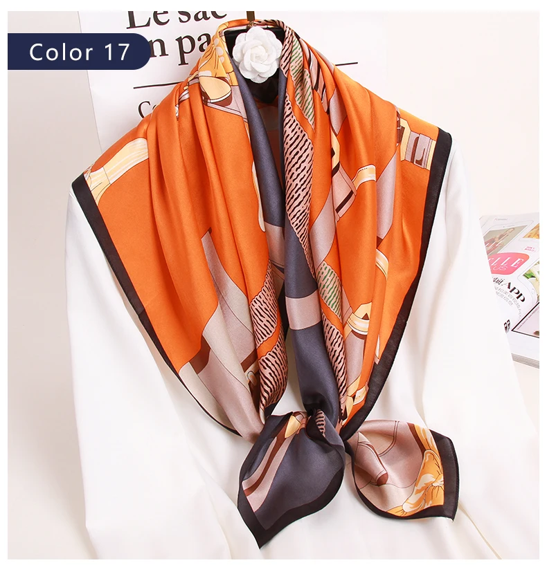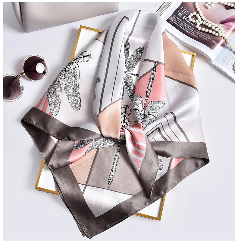 Квадратный шарф из 100% шелка женский платок с принтом бандана роскошный платок квадратный шарф из чистого шелка шейный платок,шелковый платок,платок для волос 88x88 см