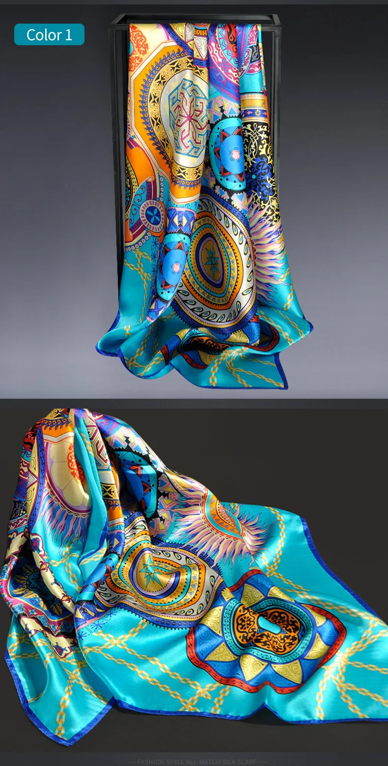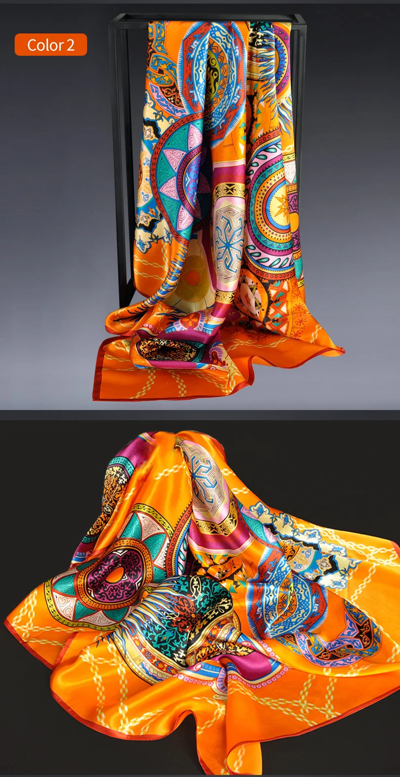 Женский квадратный шарф из 100% натурального шелка шали и палантины Дамская бандана винтажный принт Bufanda квадратный шелковый шарф платок 88*88 см