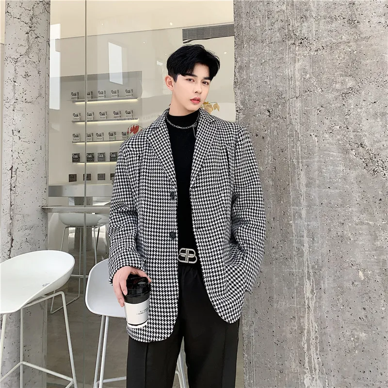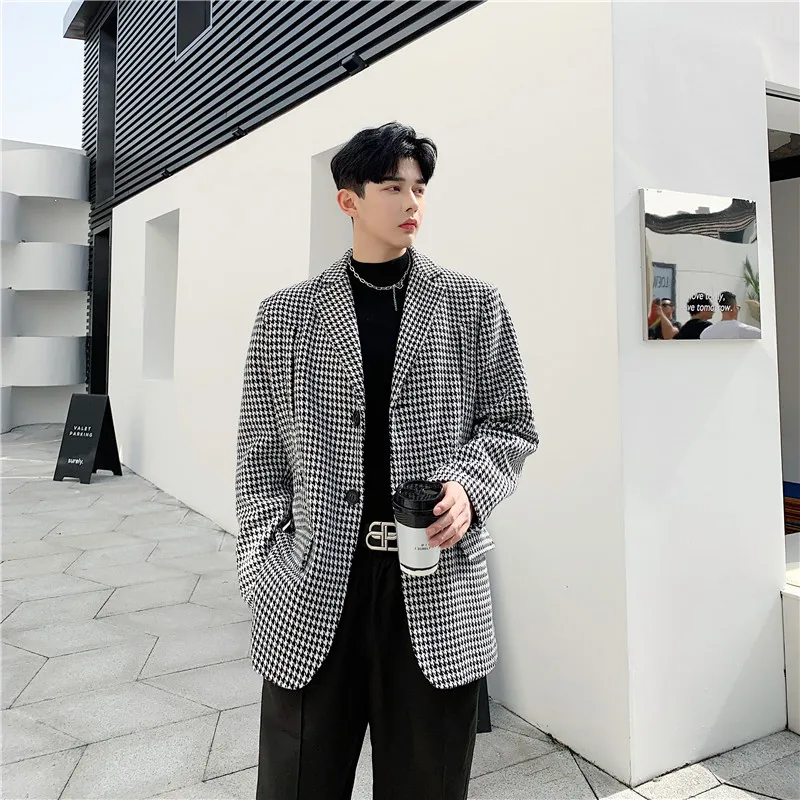 Мужской Свободный Повседневный плотный клетчатый пиджак, винтажная уличная одежда в 2 стилях, верхняя одежда