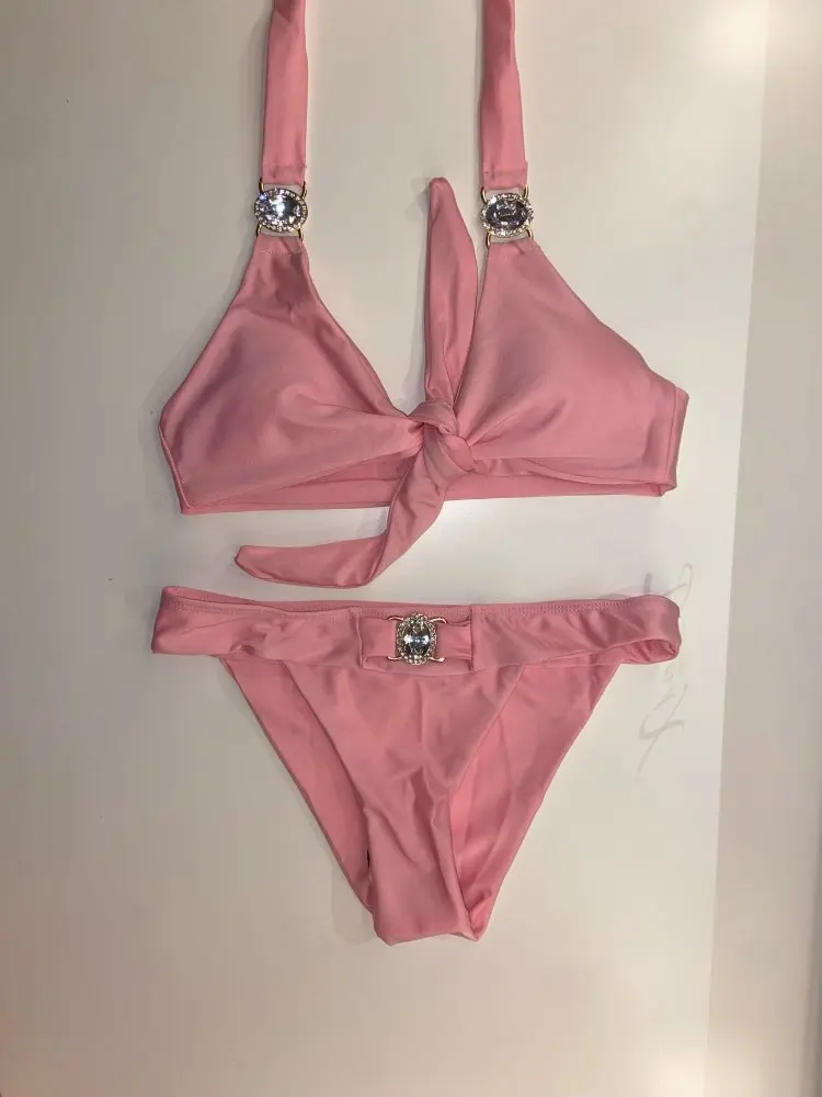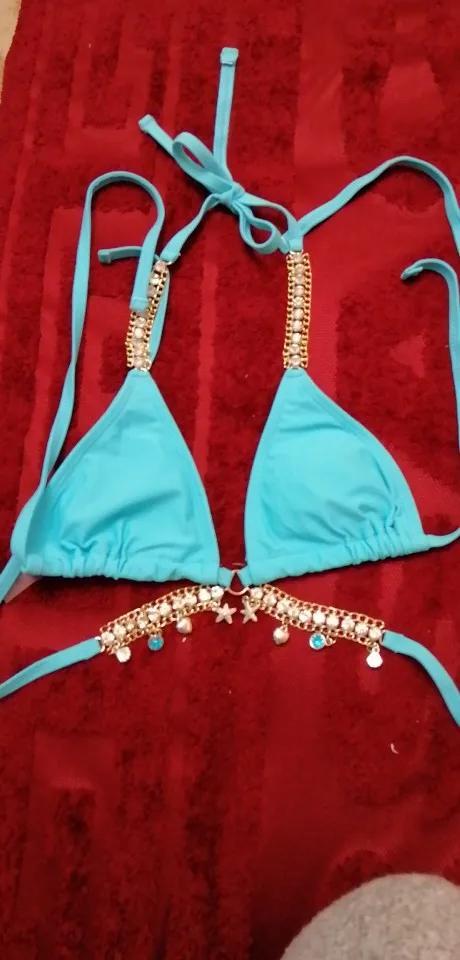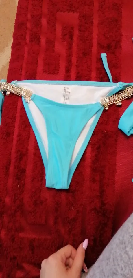 Красивое бикини. У меня 34 европейских размера, и мне было бы лучше с S. Так как нижняя часть, которую я должен зафиксировать. Но он красивый.