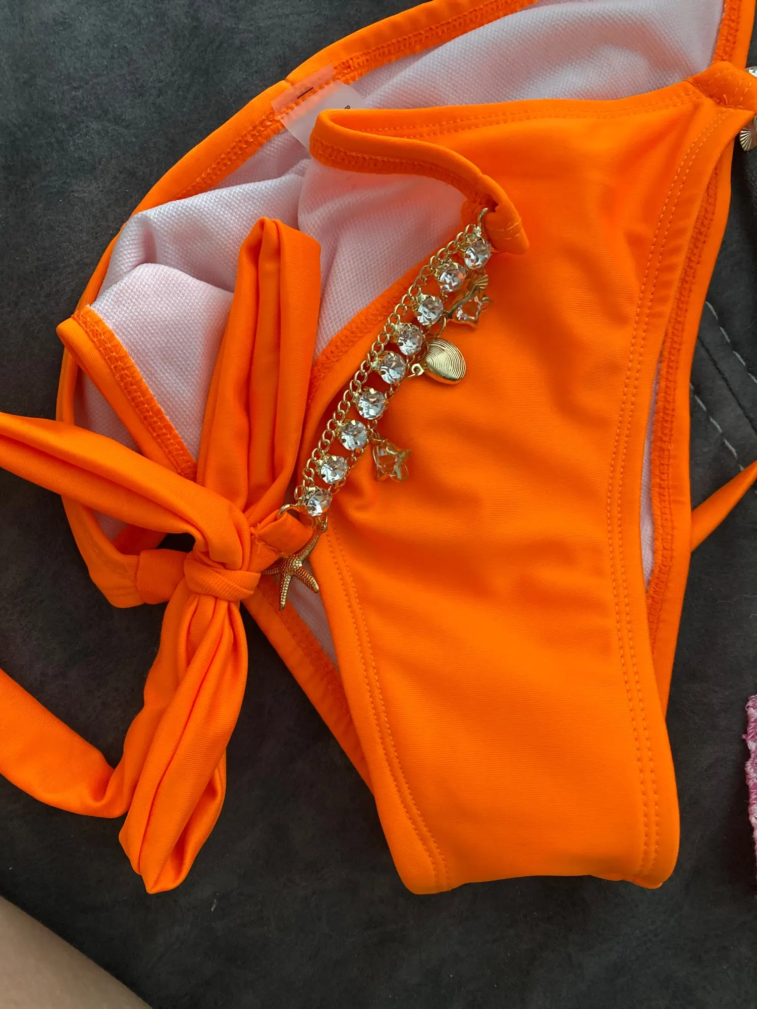 Цвет не такой яркий или темно-оранжевый, как я думал, но бикини очень милое и выгодное предложение! Выглядит красиво, сшито и украшено. Большое спасибо за предложение милого бикини по этой цене. Я буду заказывать больше у этого продавца. Также прибыл в течение 3 недель из Китая в Калифорнию во время crazy mail time, так что я тоже доволен временем доставки. Спасибо.
