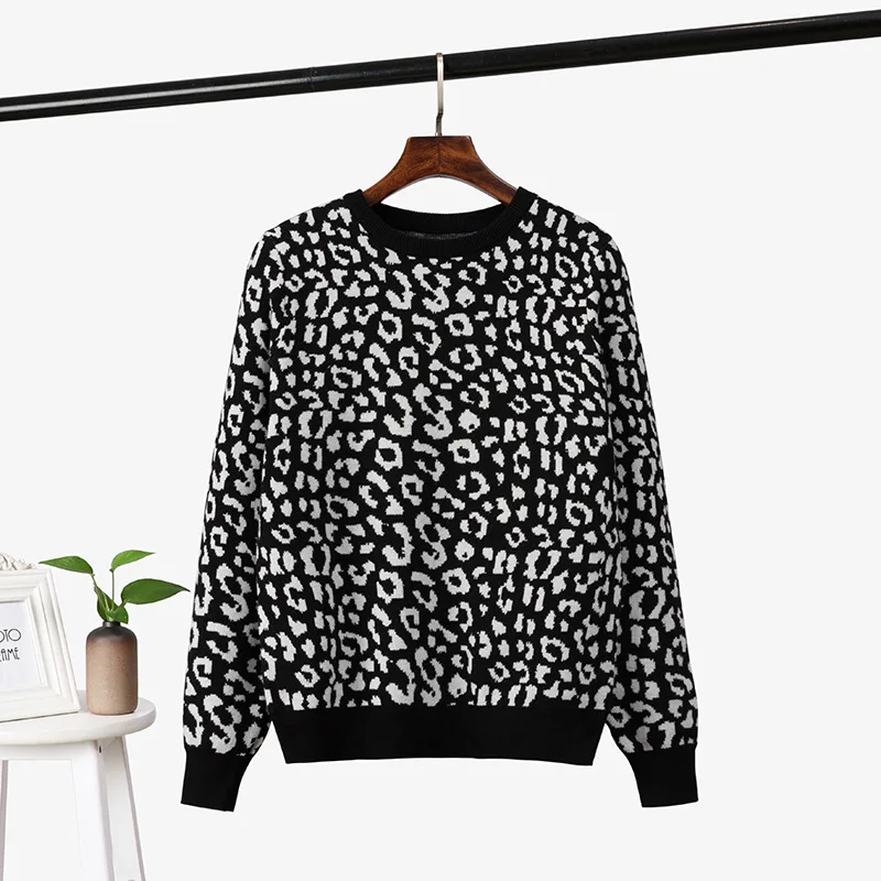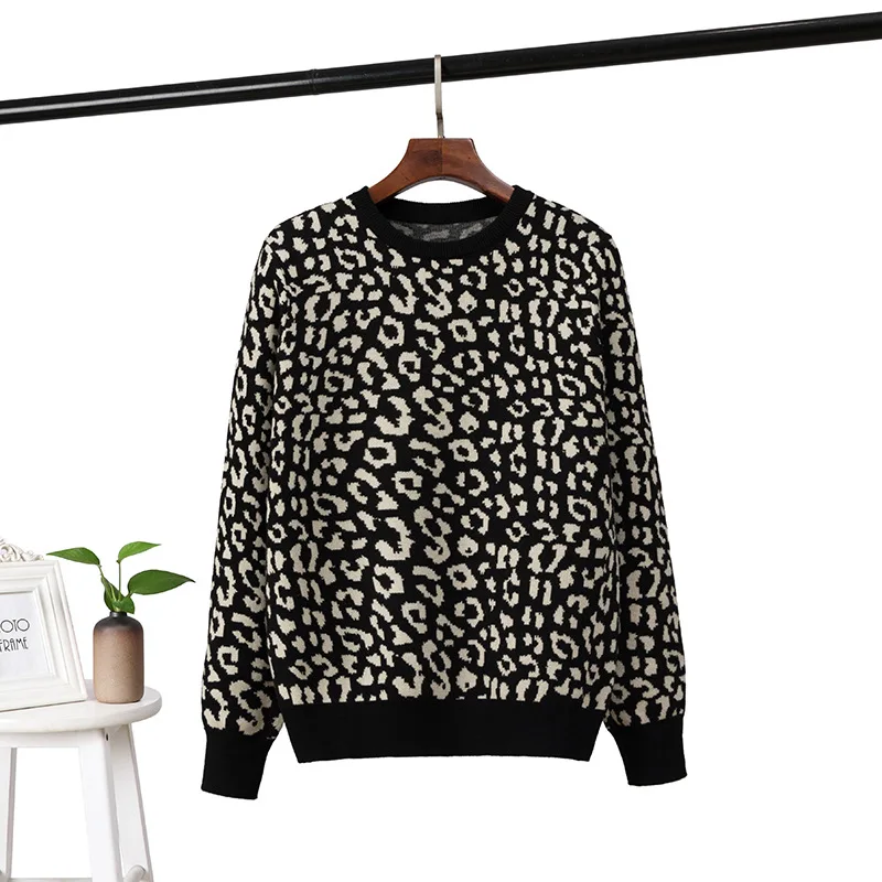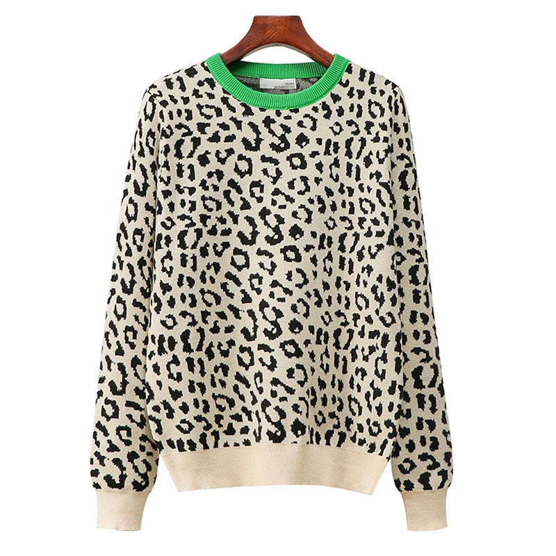 HLBCBG осень-зима женские свитера с леопардовым принтом вязаные пуловеры Длинные рукава контраст Цвет crewneck пе