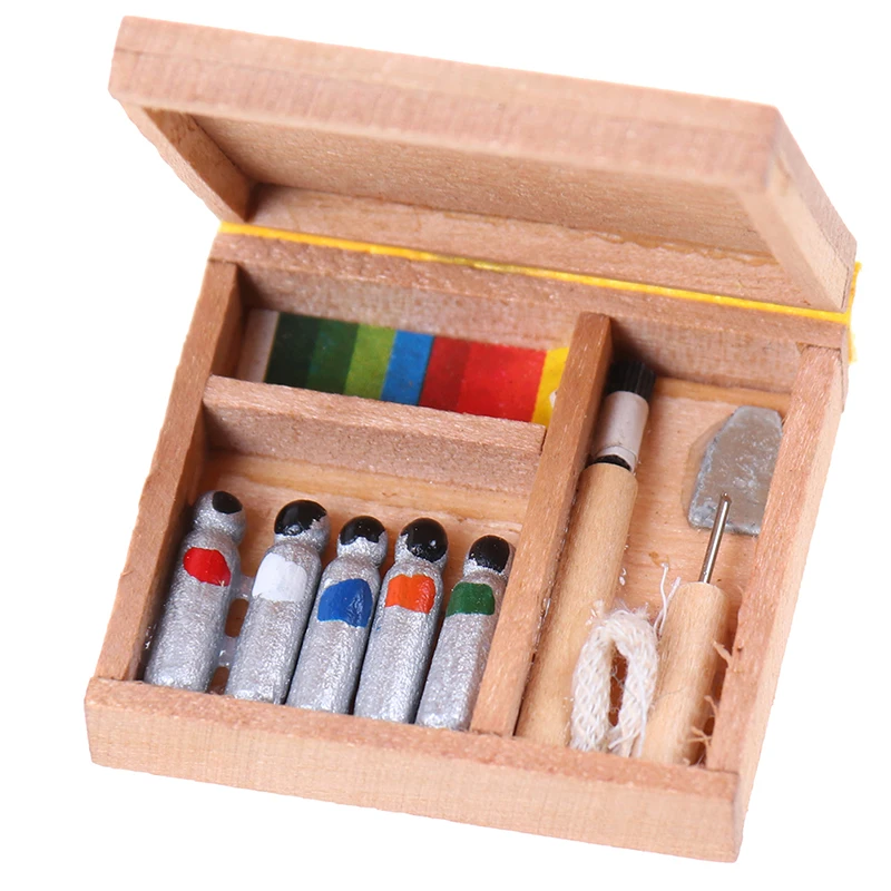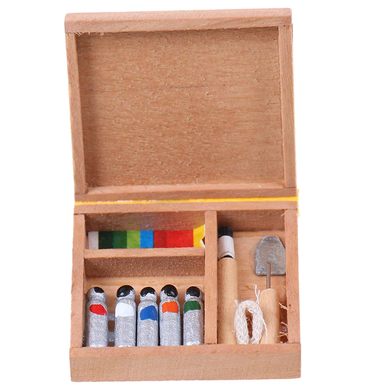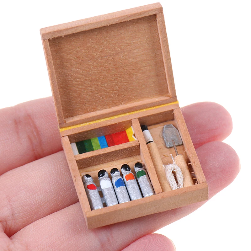 Коробка для рисования кукольного домика в масштабе 1:12, миниатюрная коробка для рисования, пигментные палочки, детали для кукольного домика сделай сам, игрушечные Миниатюрные аксессуары