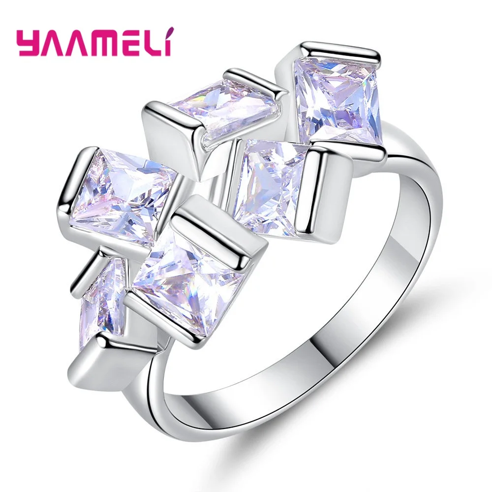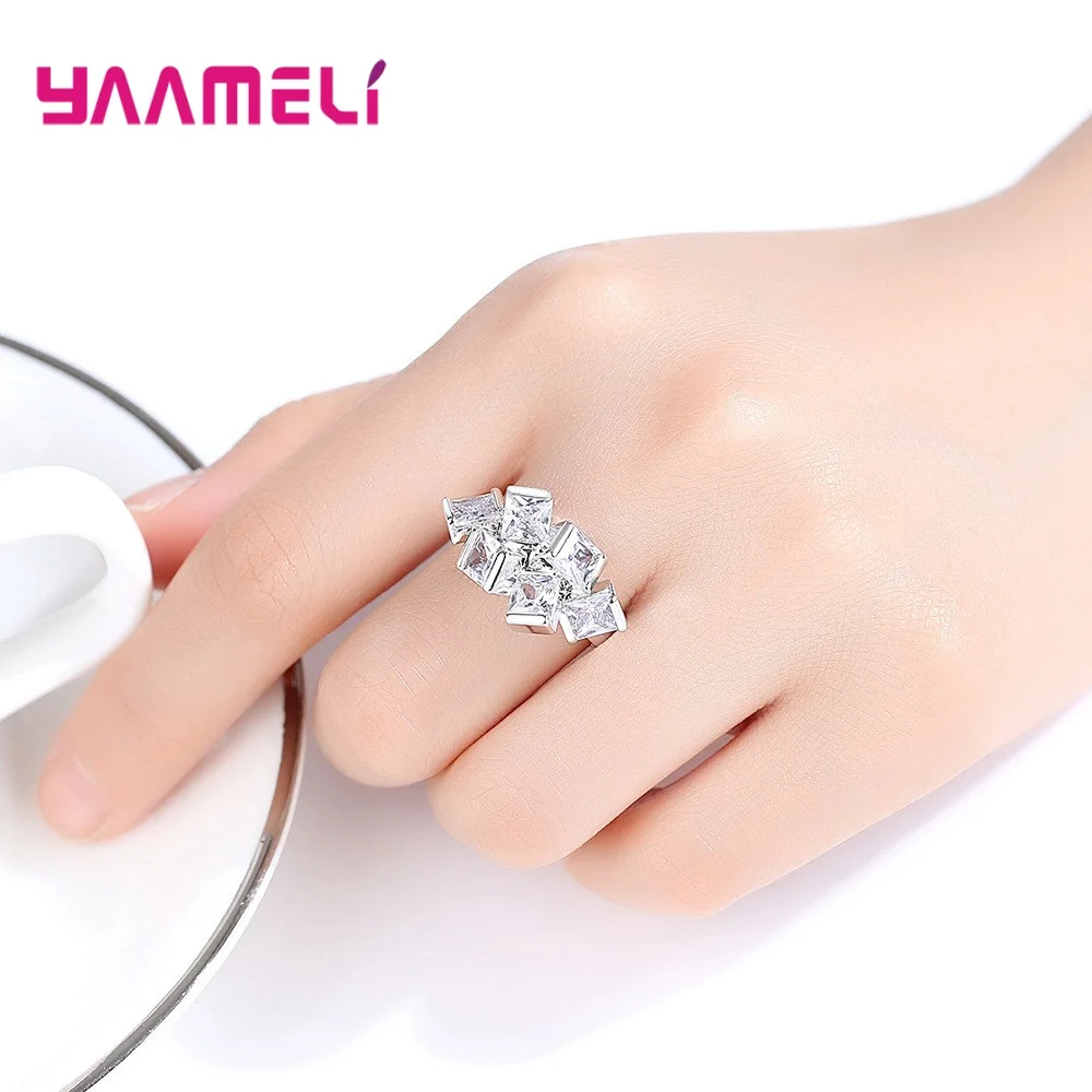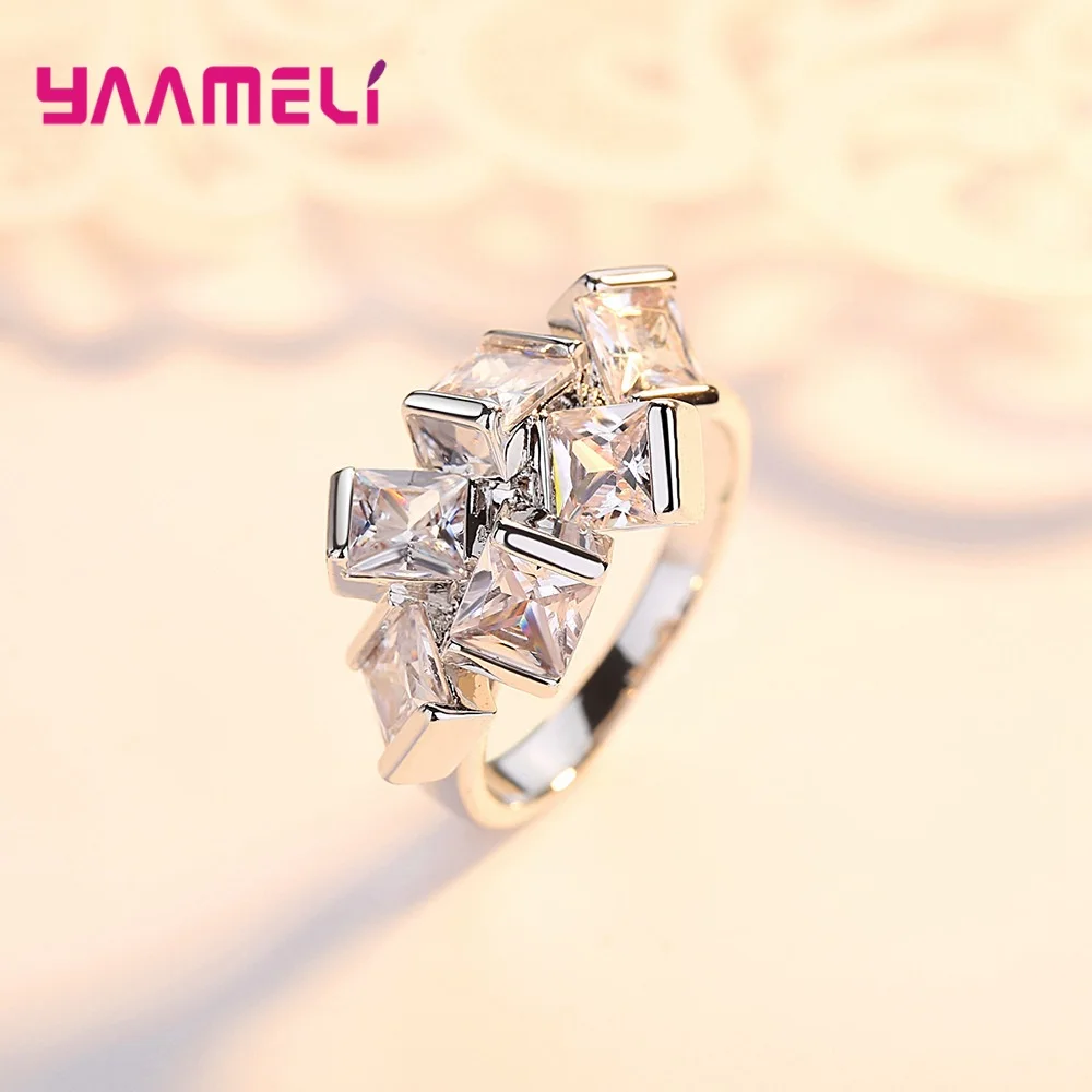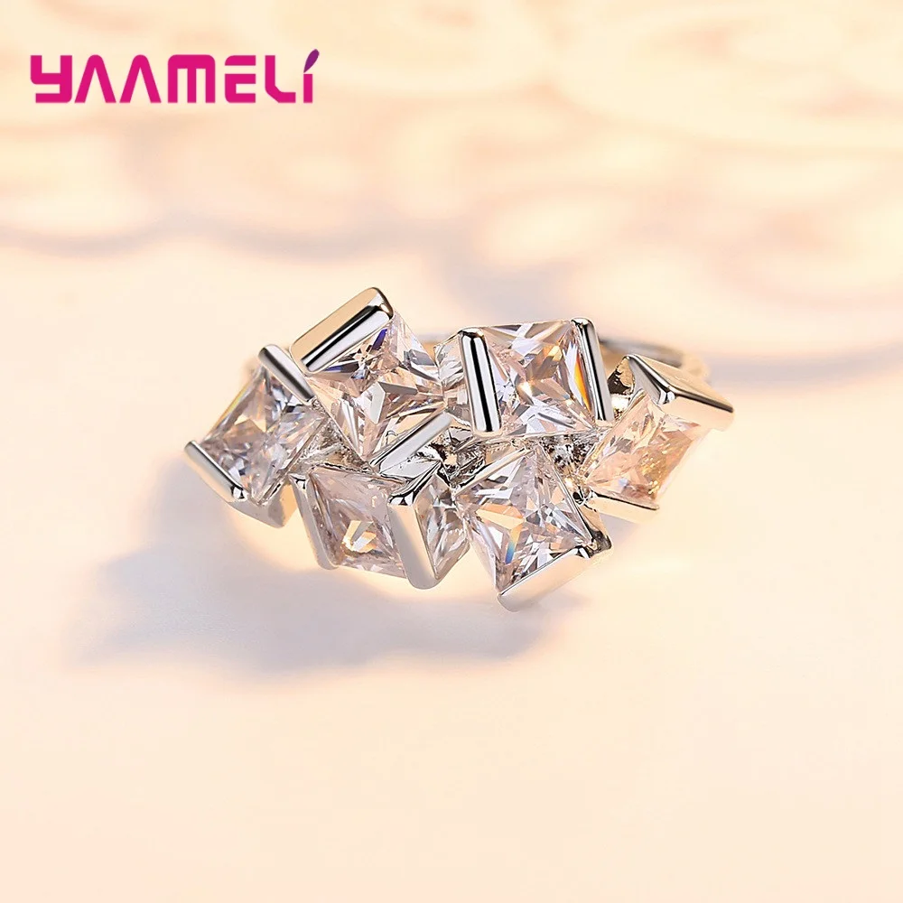Настоящее 925 пробы, серебряные кольца, блестящие, прозрачные, кубический цирконий, маленький квадратный кристалл, ювелирные изделия для женщин, Помолвочное ювелирное изделие, акция
