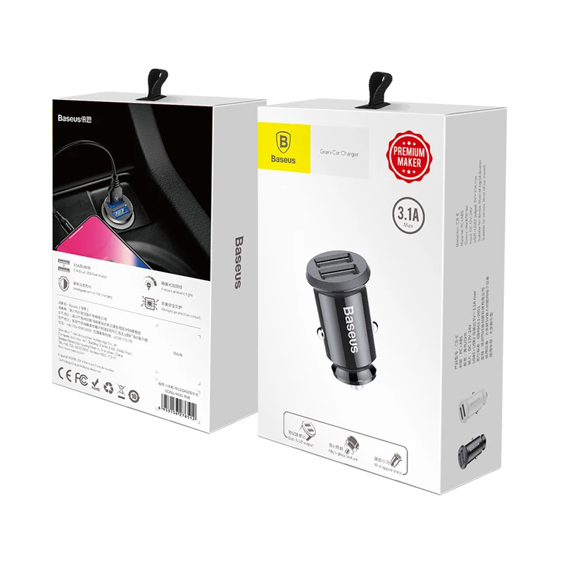 Baseus Mini Dual USB Автомобильное зарядное устройство 5 в 3,1 а Быстрая зарядка 2 порта USB телефон авто зарядное устройство адаптер для Мобильный телефон планшет автомобильное зарядное устройство