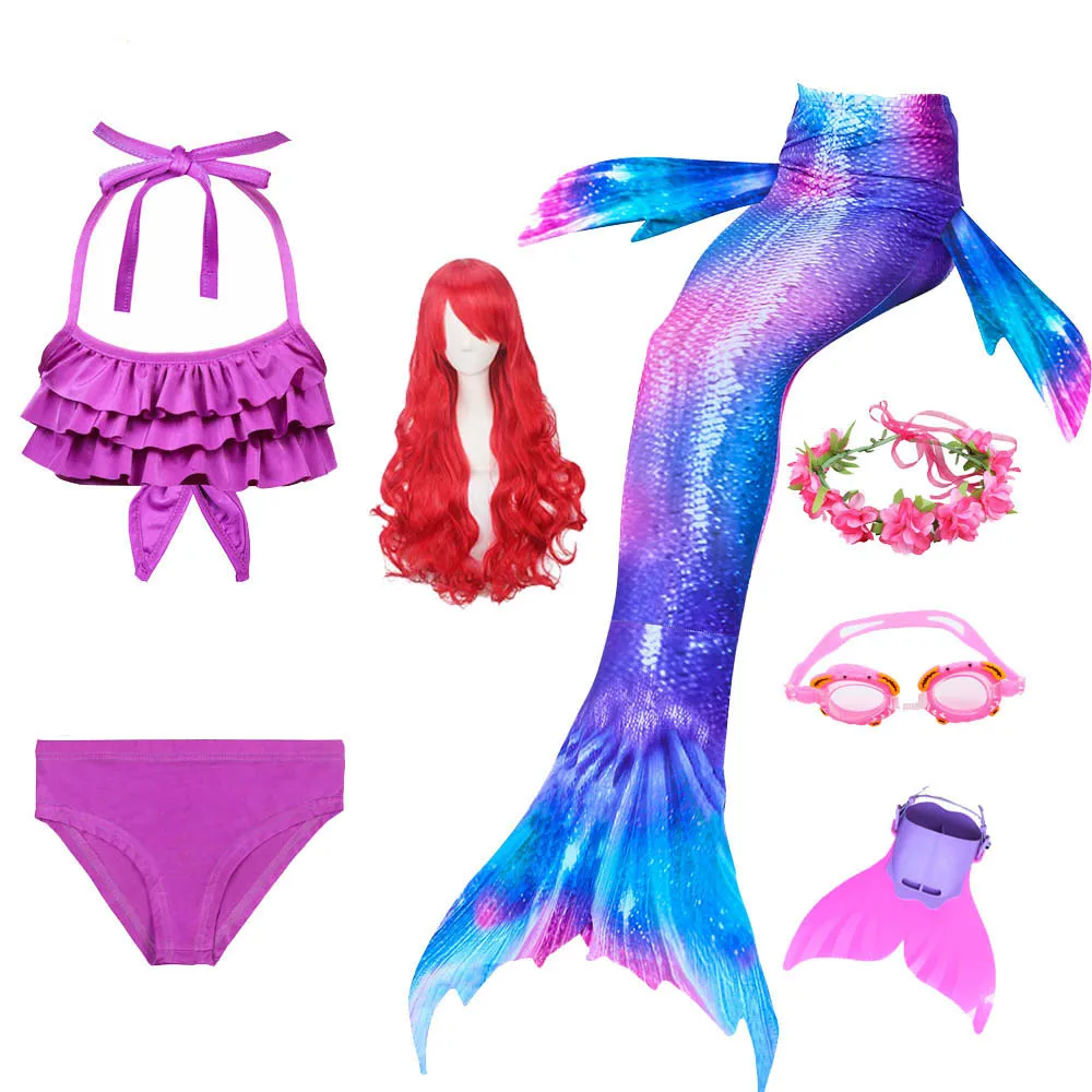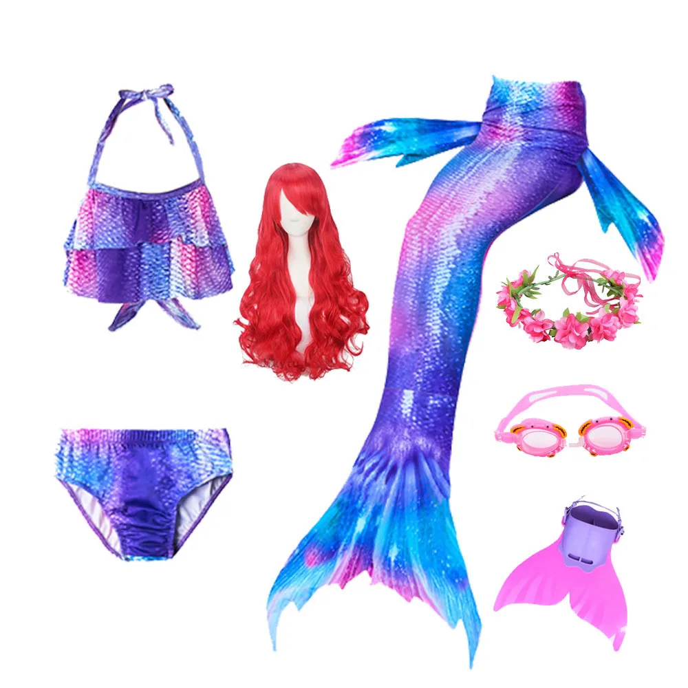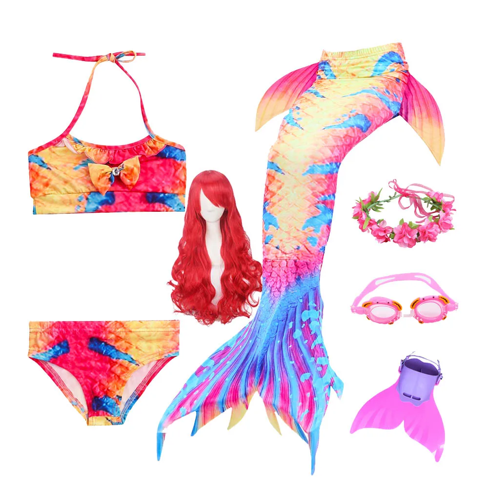 Детский комплект бикини с моноластами, для девочек, с моноластами, на Рождество, купальник, хвост русалки