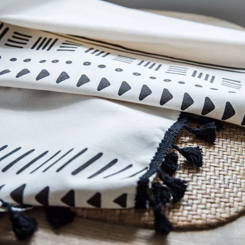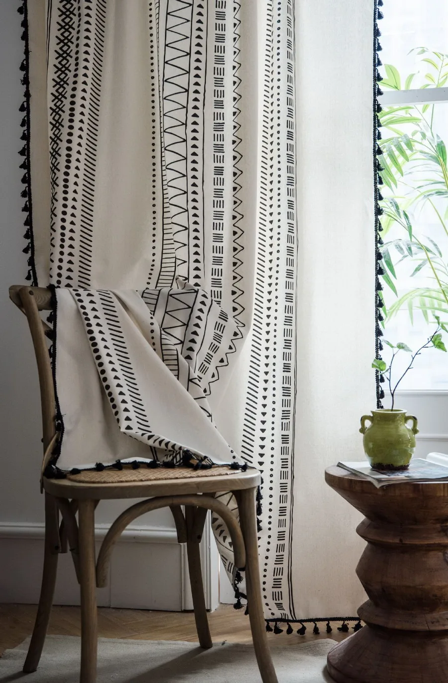 Треугольная занавеска для гостиной из хлопка и льна, черная дизайнерская занавеска с кисточками в богемном стиле для кухни, готовые оконные занавески M213Y