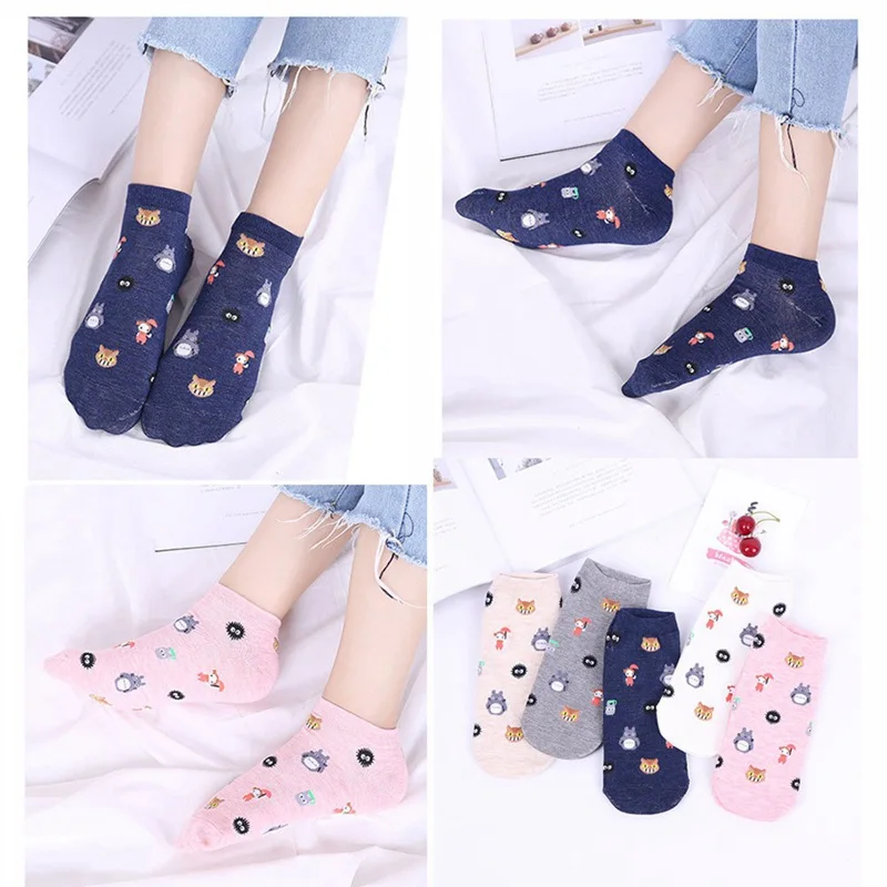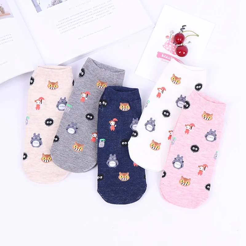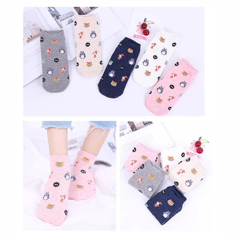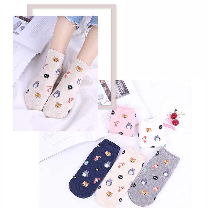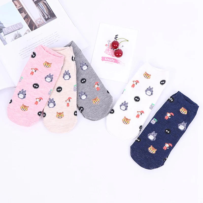 Милые Мультяшные носки Тоторо женские носки Miyazaki с аниме Харадзюку летние смешные носки до щиколотки в полоску Тоторо