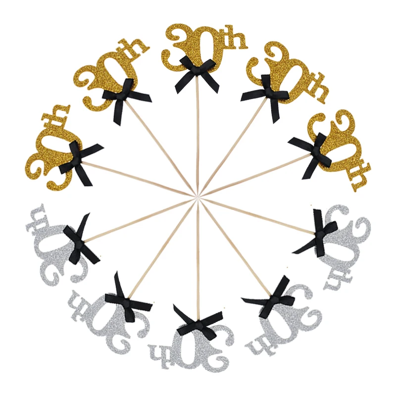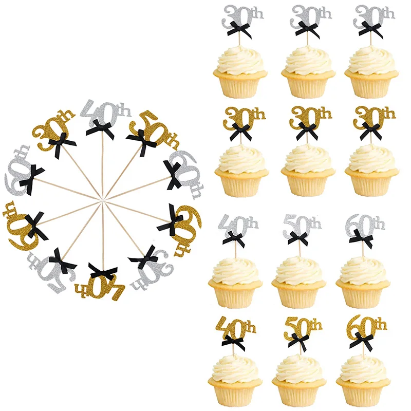 10 шт., 30, 40, 50, 60 лет, торты для кексов, день рождения, юбилей, 30, 40, 50, 60 лет, аксессуары для торта на день рождения