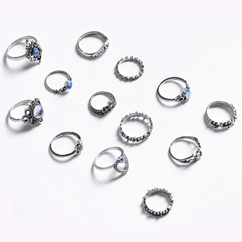 Набор винтажных колец с короной и гравировкой для женщин, ювелирные изделия, обручальные кольца, ювелирные изделия на годовщину, 13 штук