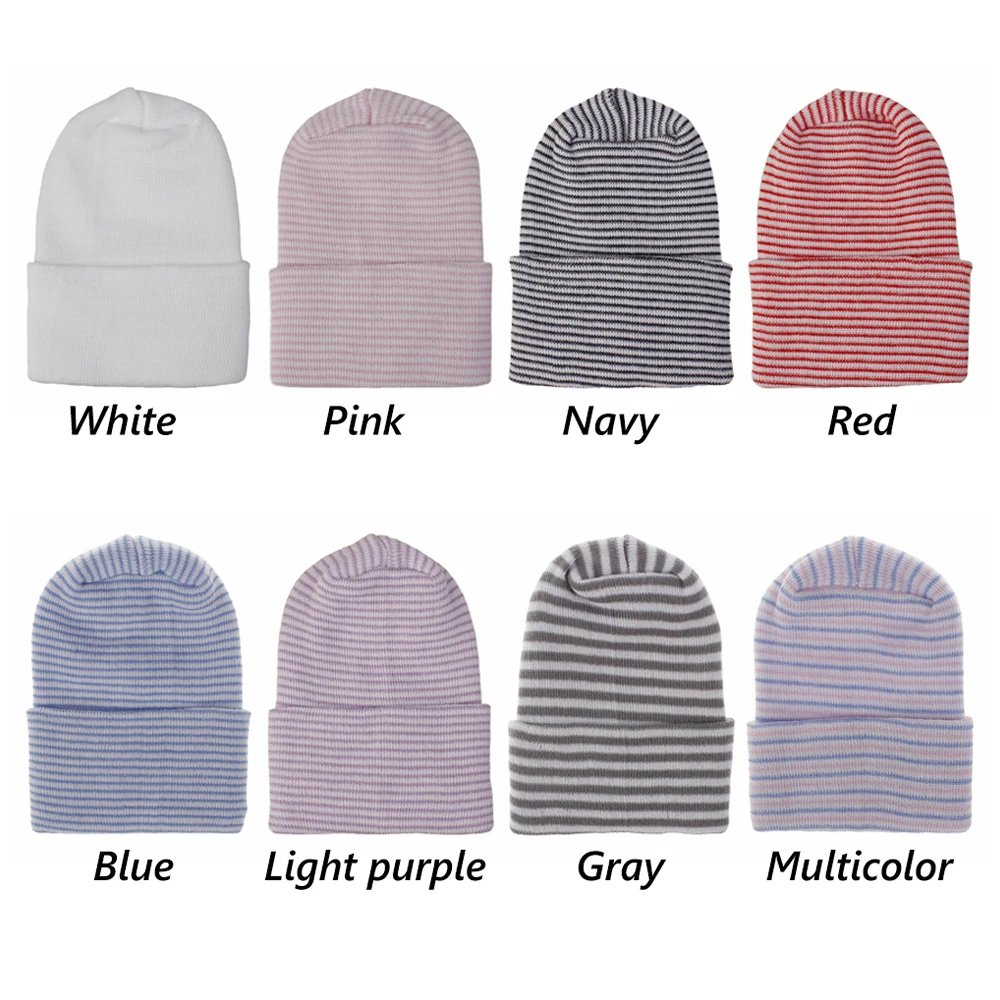 Детская Хлопковая полосатая шапка, одноцветная шапка для младенцев, мягкая шапка-тюрбан для новорожденных, Детская уличная Повседневная Шапка-бини, головной убор