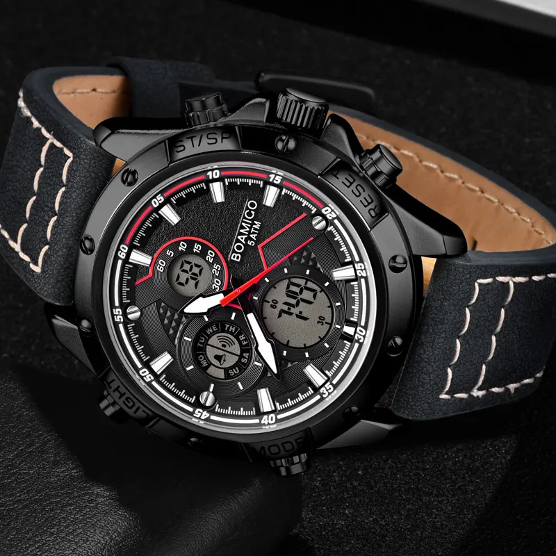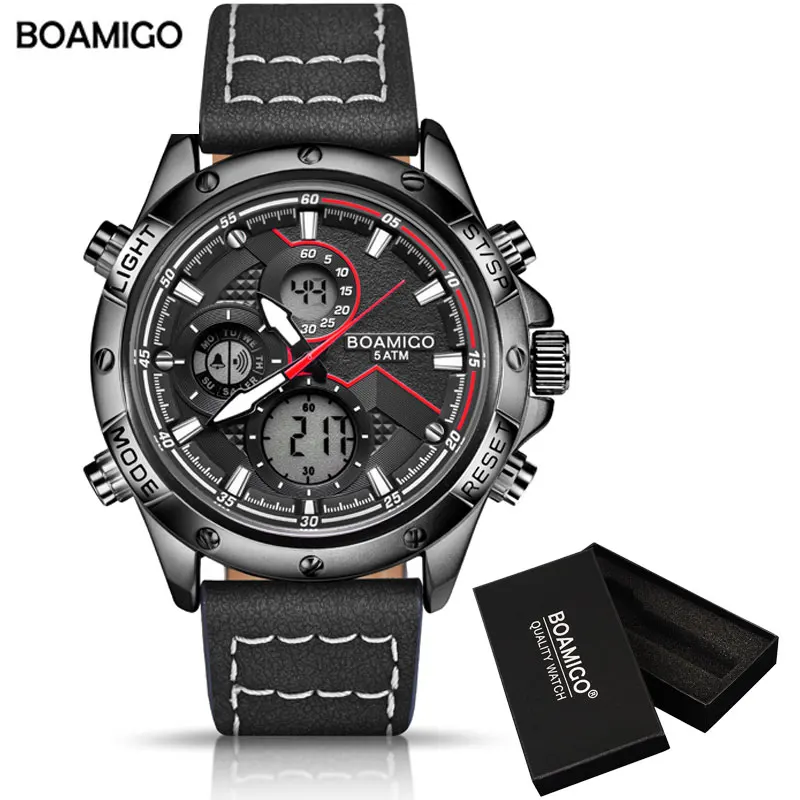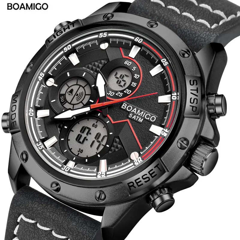 часы мужские часы мужские наручные мужские часы часы наручные мужские часы мужские брендовые BOAMIGO модные мужские часы для мужчин военный цифровой аналоговый кварцевый хронограф спортивные часы водонепроницаемые