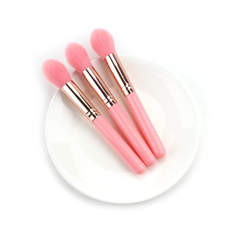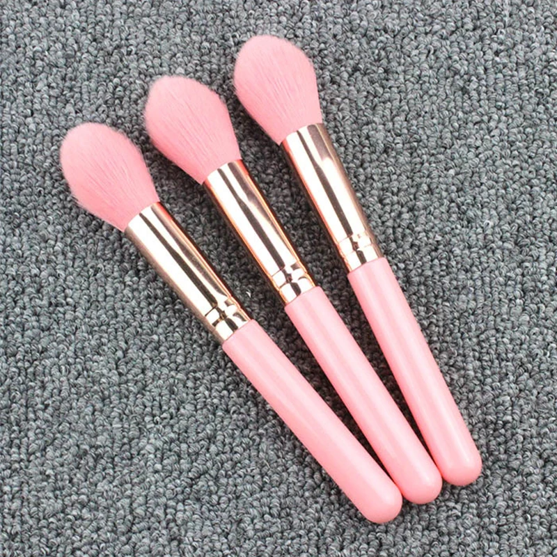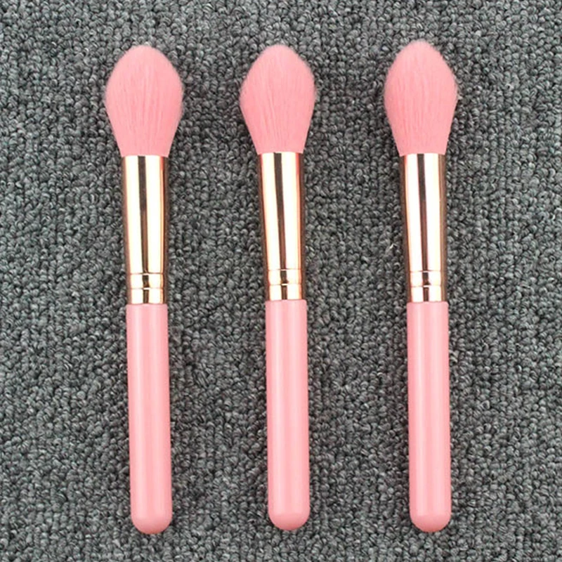 Розовая маленькая кисть для румян, пластиковая ручка, кисть с эффектом пламени, ОПП пакет, Кисть для макияжа, оптом