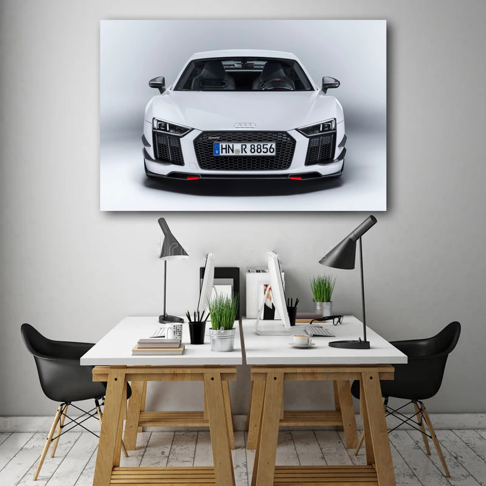 Постеры и принты автомобиля Audis R8 V10, белый автомобиль, суперкар, шелковая Настенная картина, Современное украшение для дома