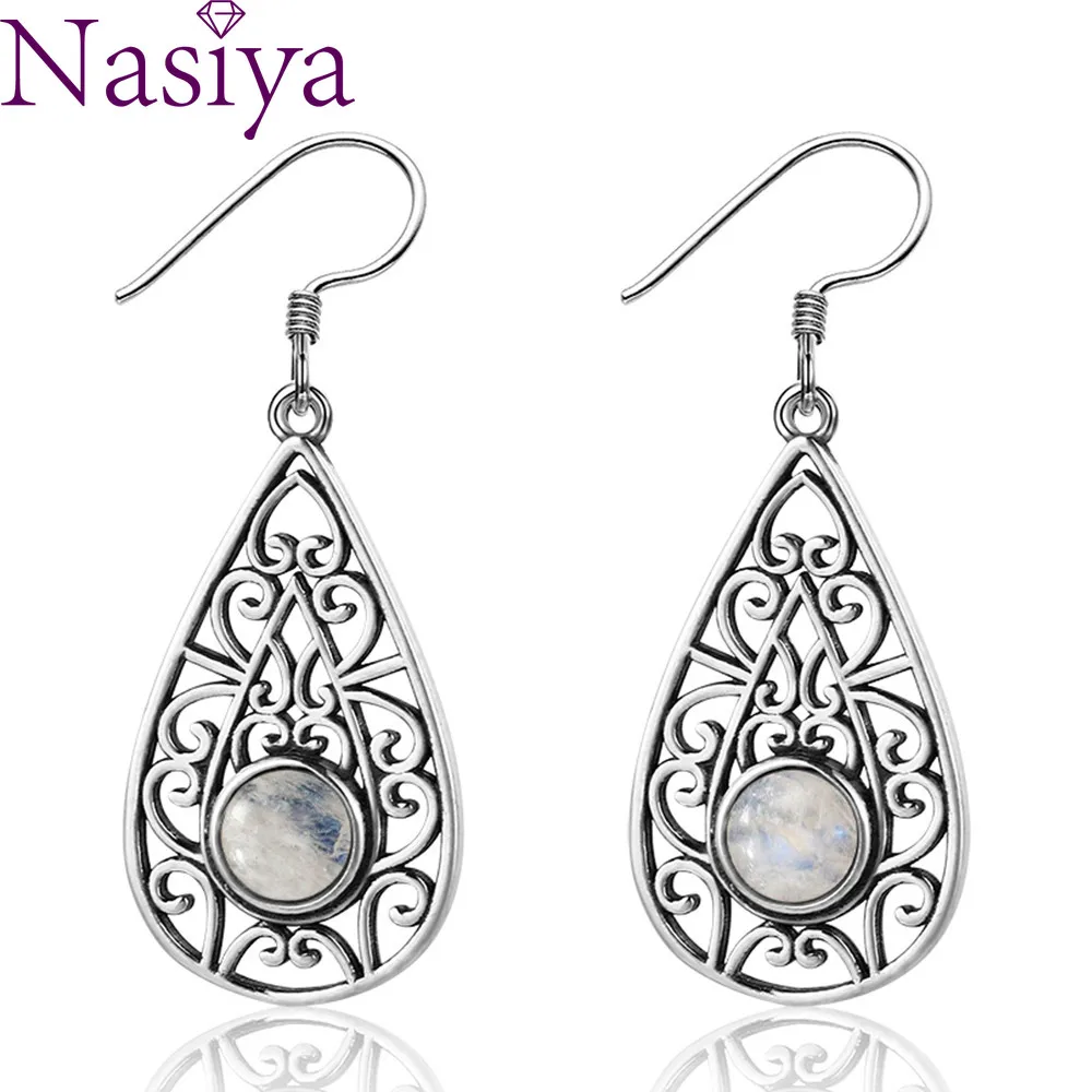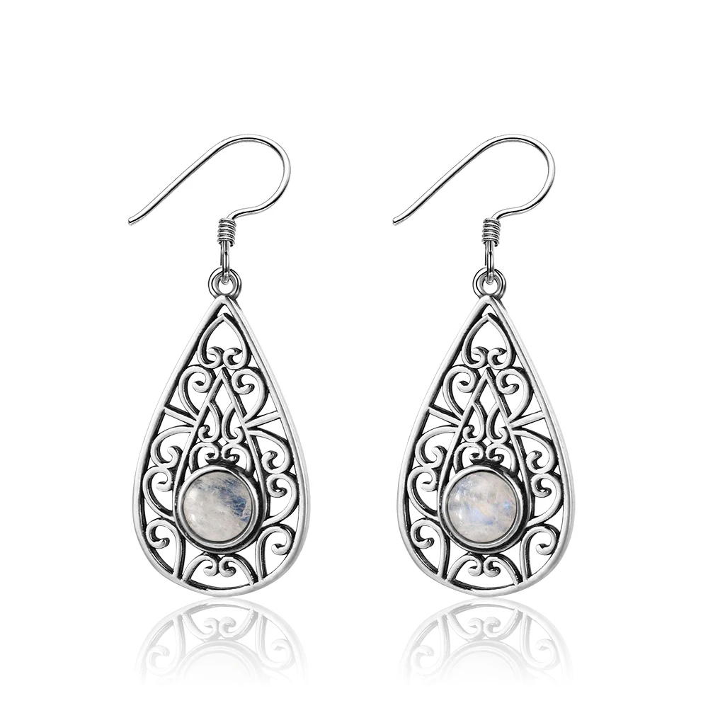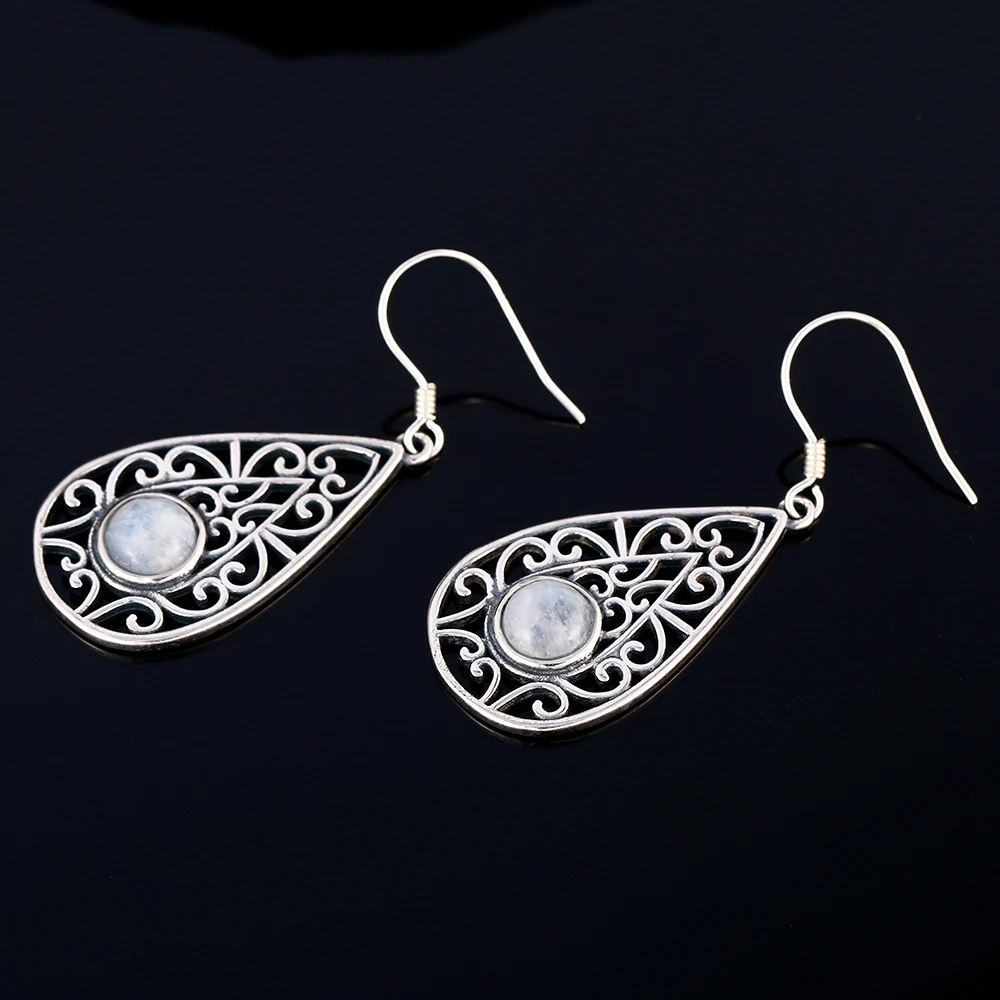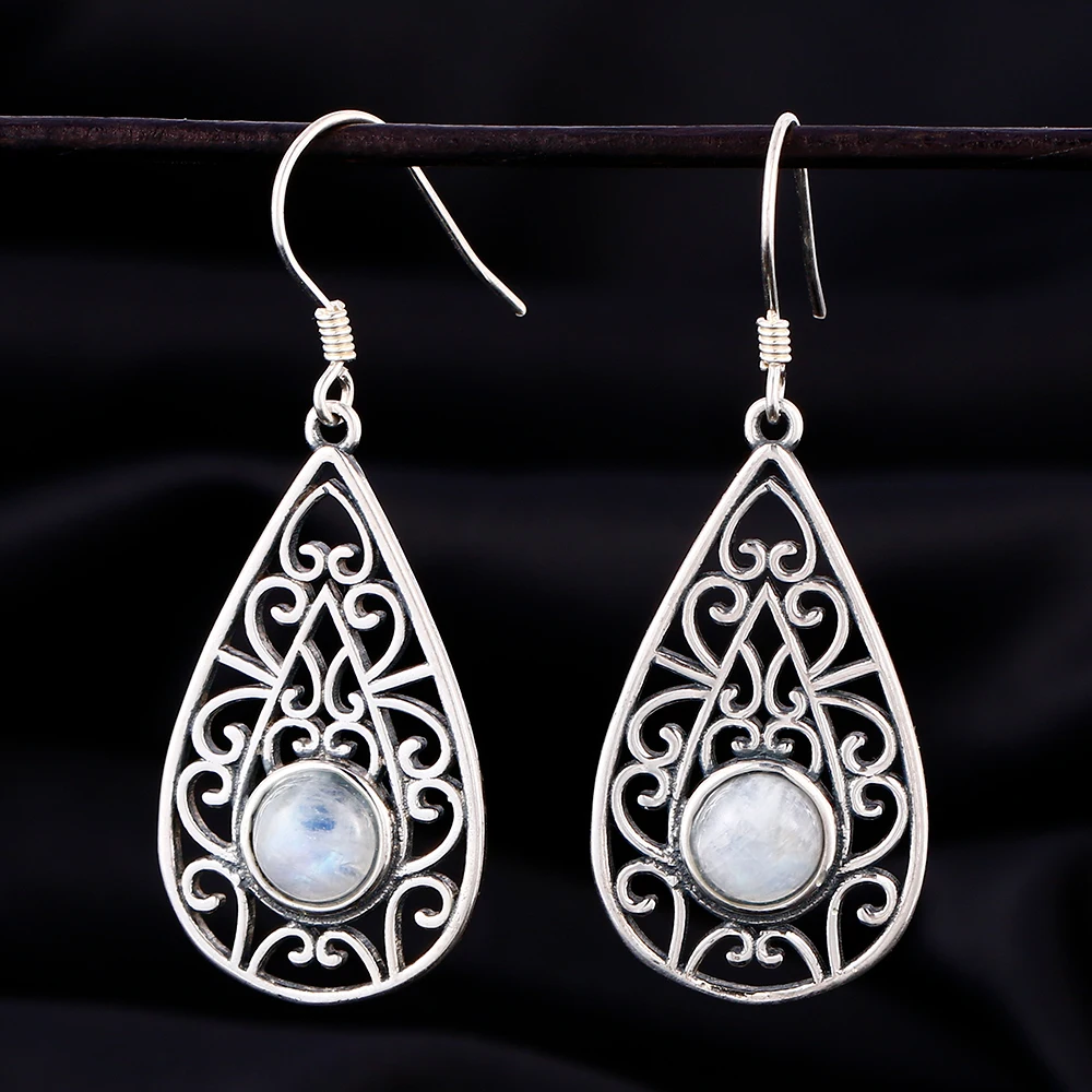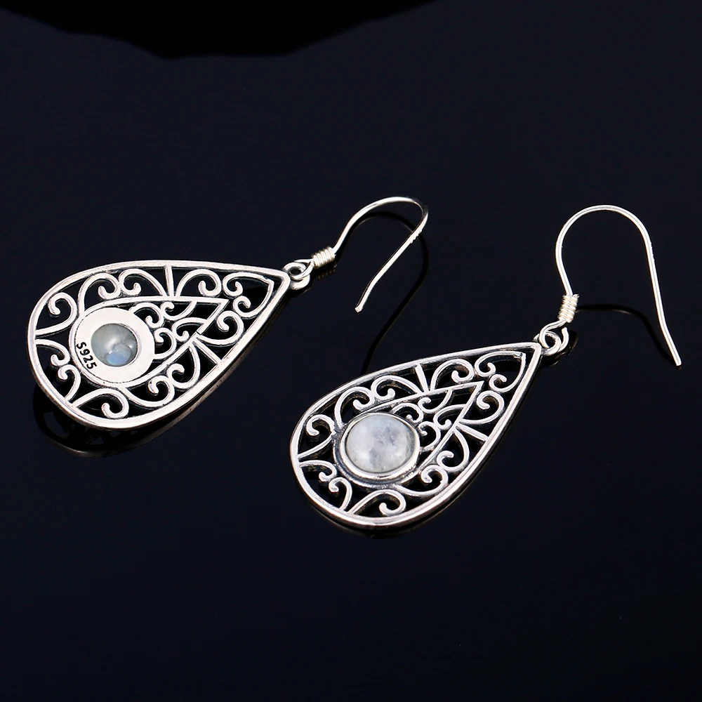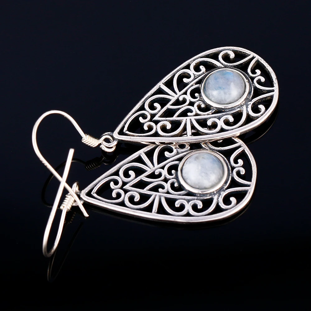 Серьги из стерлингового серебра 925 пробы с круглым лунным камнем 6 мм в стиле ретро с персидской текстурой, серьги-подвески для помолвки и вечевечерние