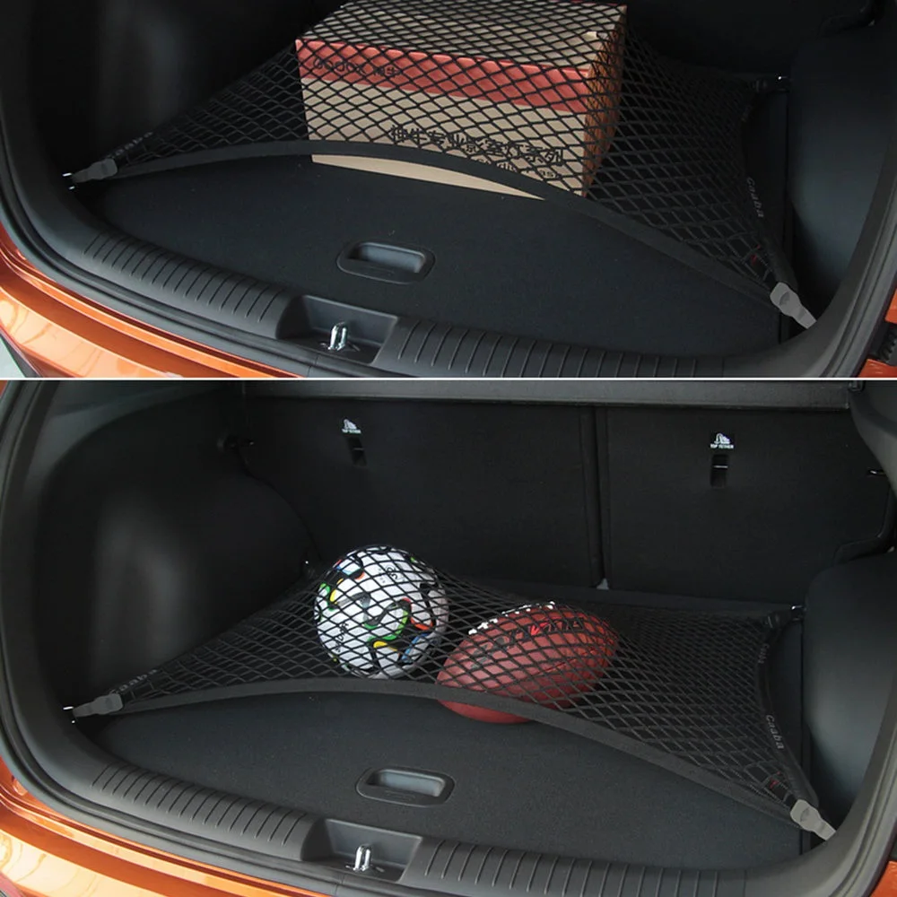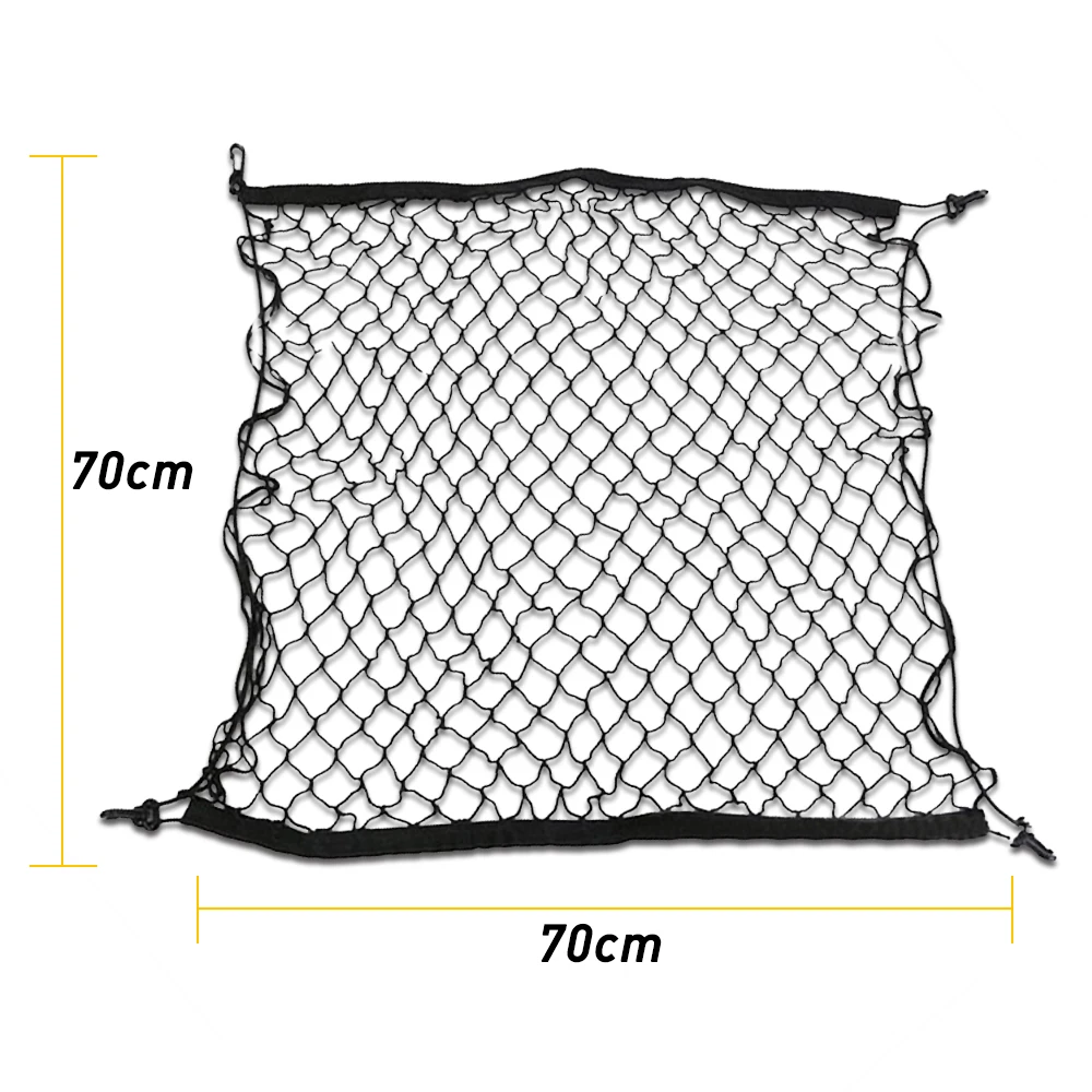 Тип: Автомобильная грузовая сеткаЦвет: черныйРазмер: 70 см x 70 см/27,56 "x 27,56" (прибл.)Материал: полипропиленовое волокно, NR, 4 пластиковых крючкаОсобенности: Универсальный Автомобильный задний багажник-органайзер, эластичный, 4 крючка