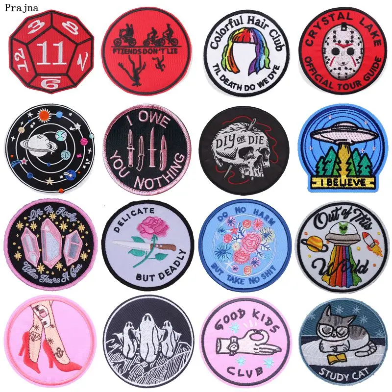 Prajna, круглая нашивка в стиле панк-рок, патчи для утюга на одежде, вышитые патчи для одежды, полоски на футболке, искусственная кожа