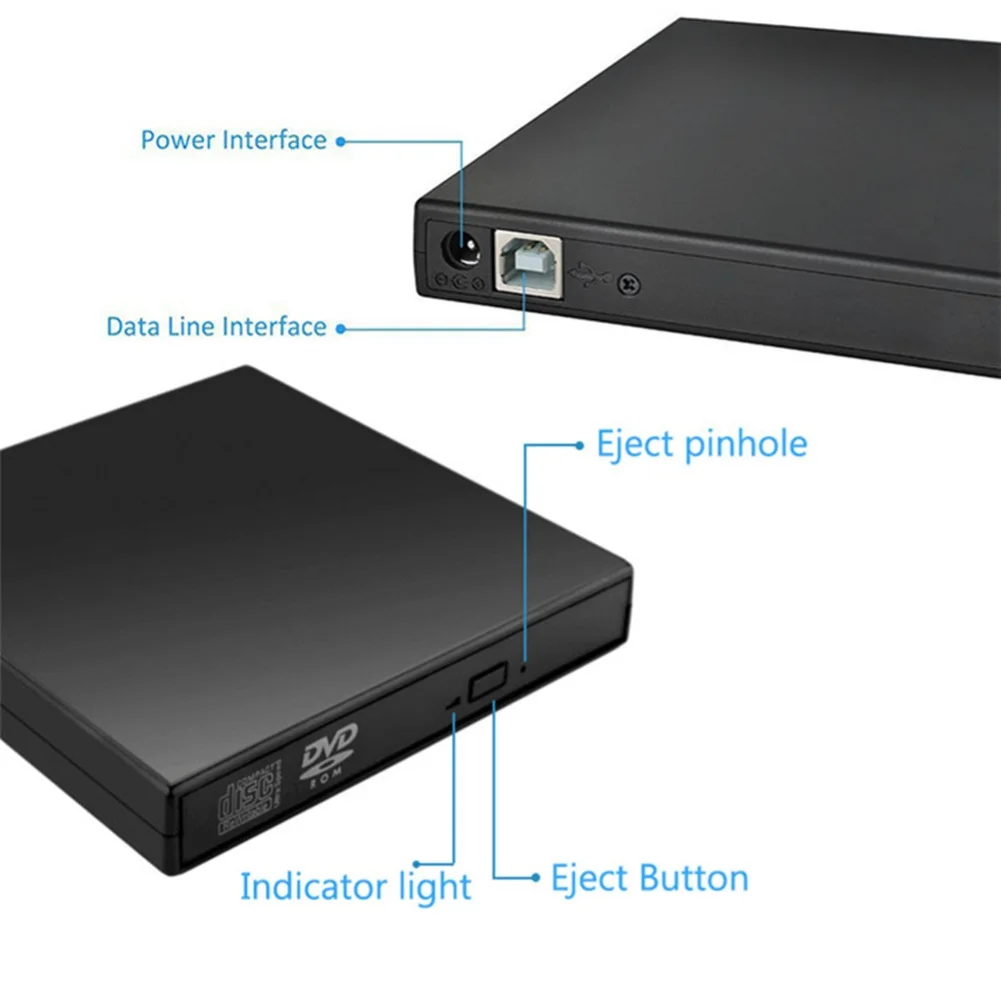 Внешний привод USB DVD, 1 Мб, CD, VCD, DVD-плеер, оптический привод для ПК, настольного компьютера, записывающее устройство, CD-RW горелок, записывающее устройство, dvd