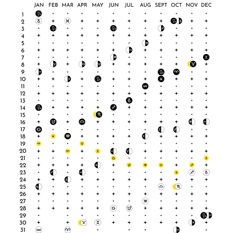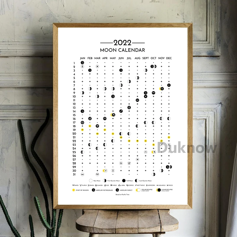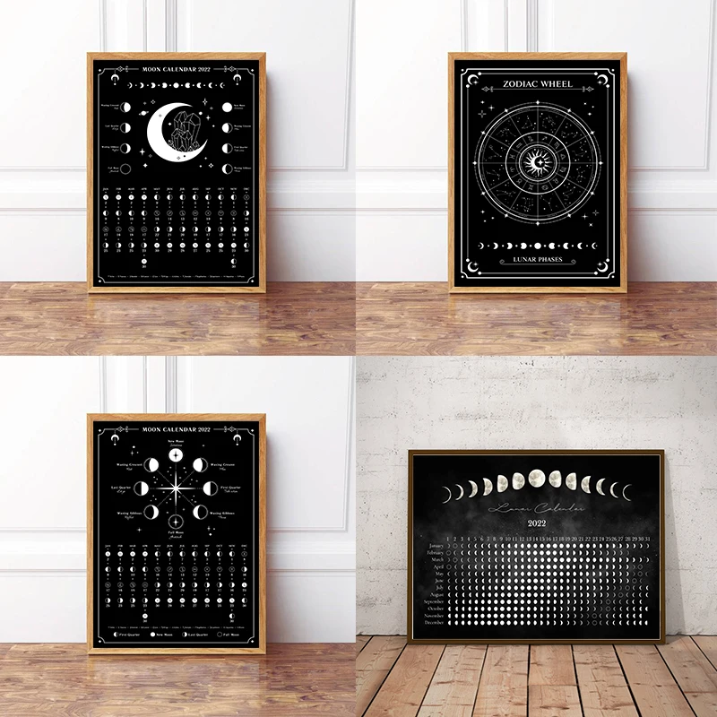 Календарь с Луной и фазой, 2022 плакаты и принты, домашний Настенный декор, 2022 лунный календарь, Картина на холсте, астрологический знак зодиака, картина