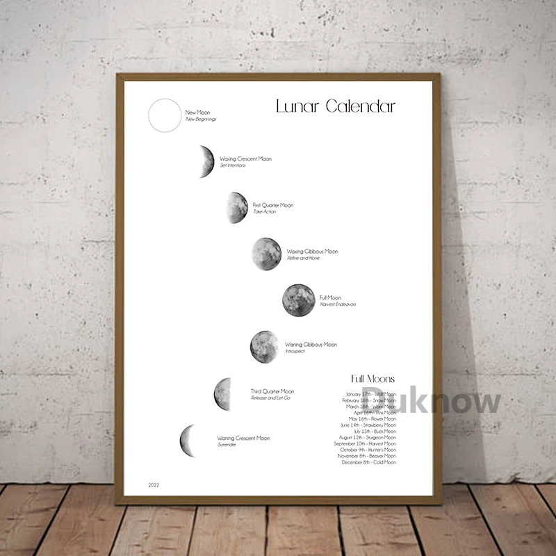 Theme2022 Moon Phase Calendar Canvas Prints Home Decor
