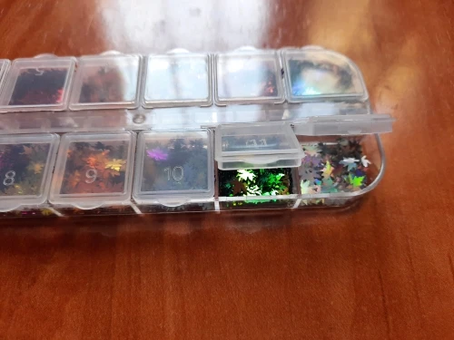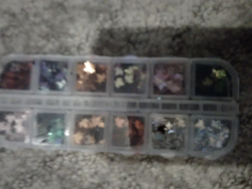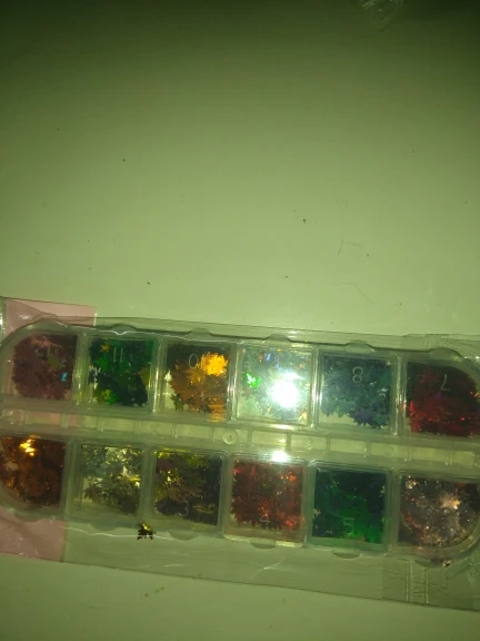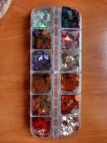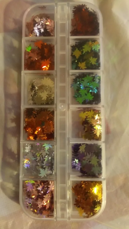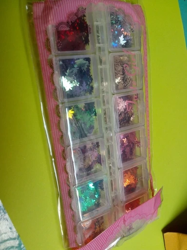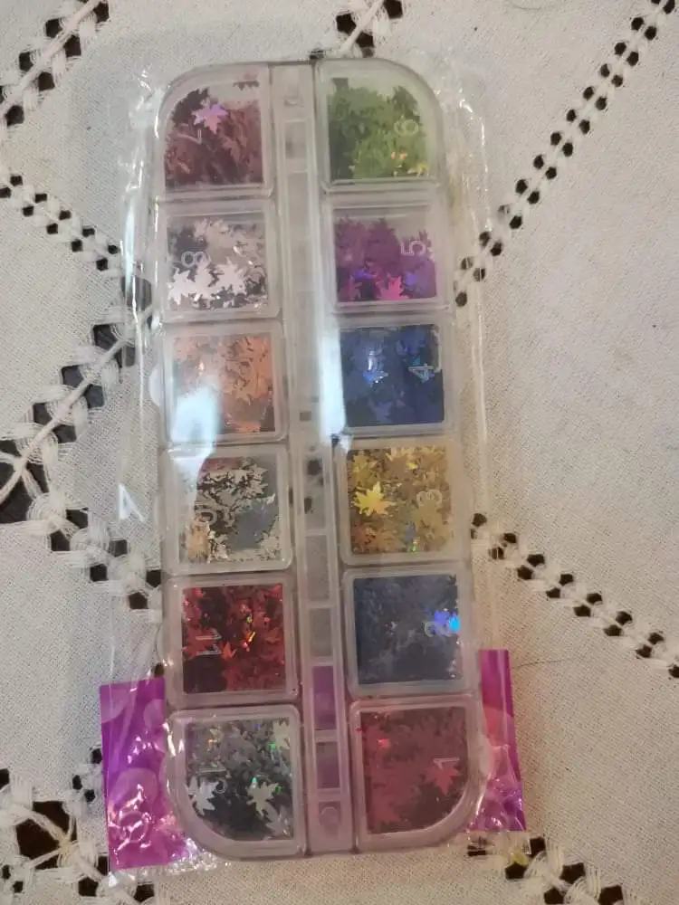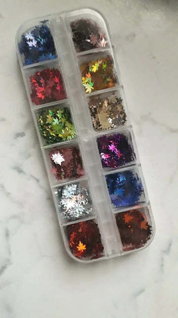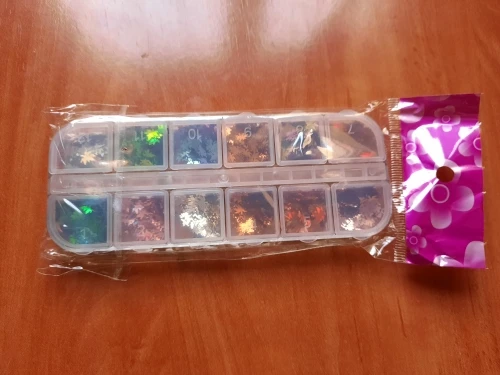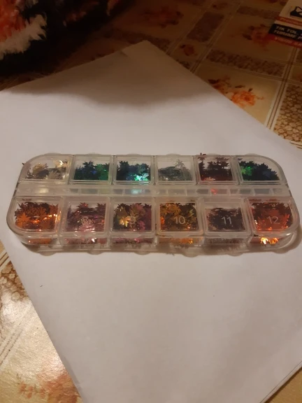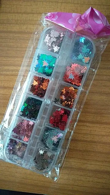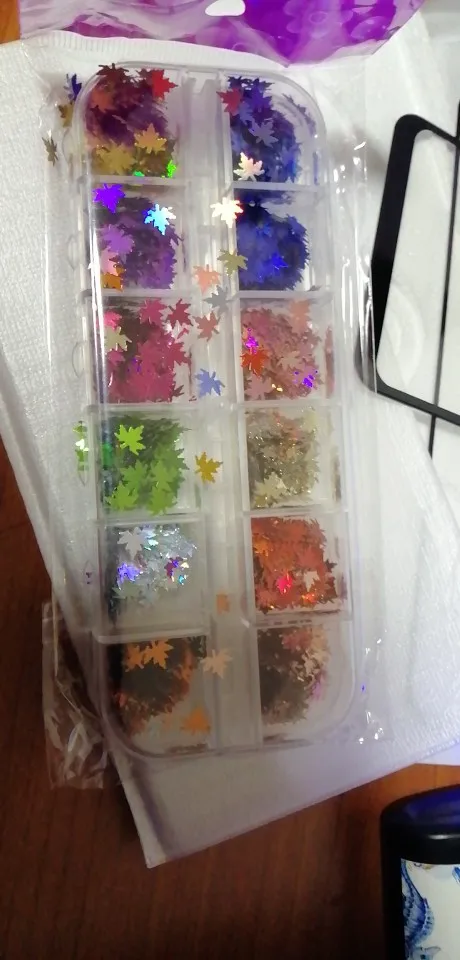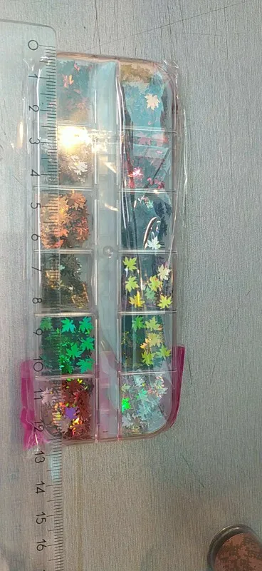 Сетчатая коробка сломалась, но продавец упаковал вещи с большим количеством пузырчатой пленки, это случается иногда, я могу использовать блестки, я только что заменил их на другой контейнер. Не могу ошибиться с этими листьями.