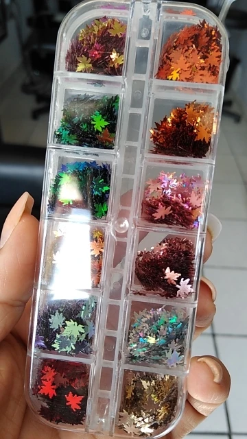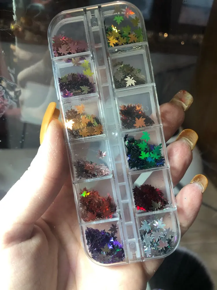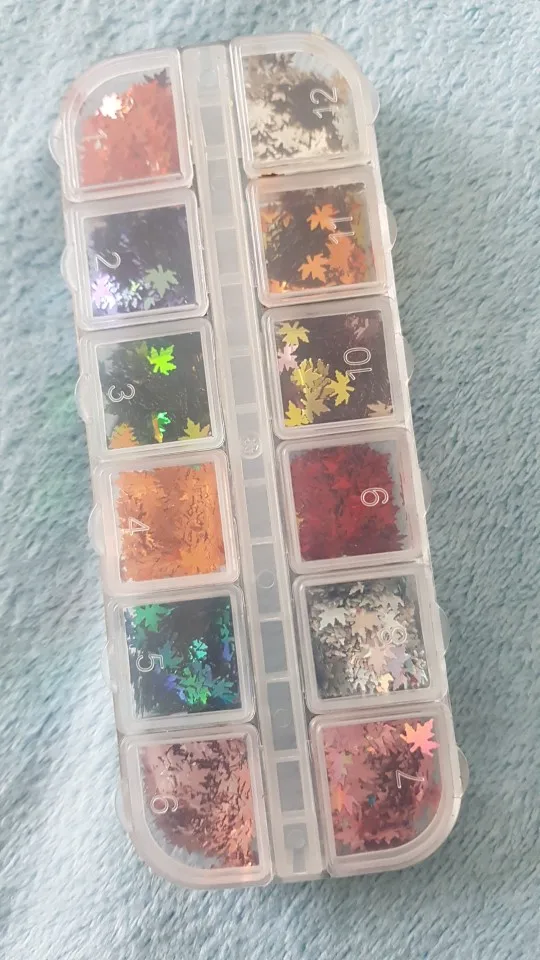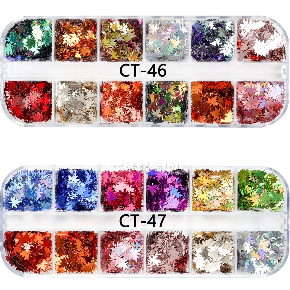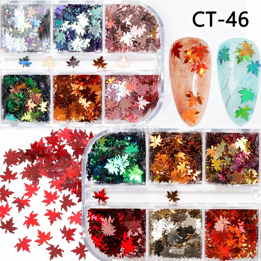 12 ячеекнабор Разноцветные рождественские кленовые листья Лазерная голографический блестящий для ногтей блестки акриловые блестки для ногтей Ломтики украшения DIY
