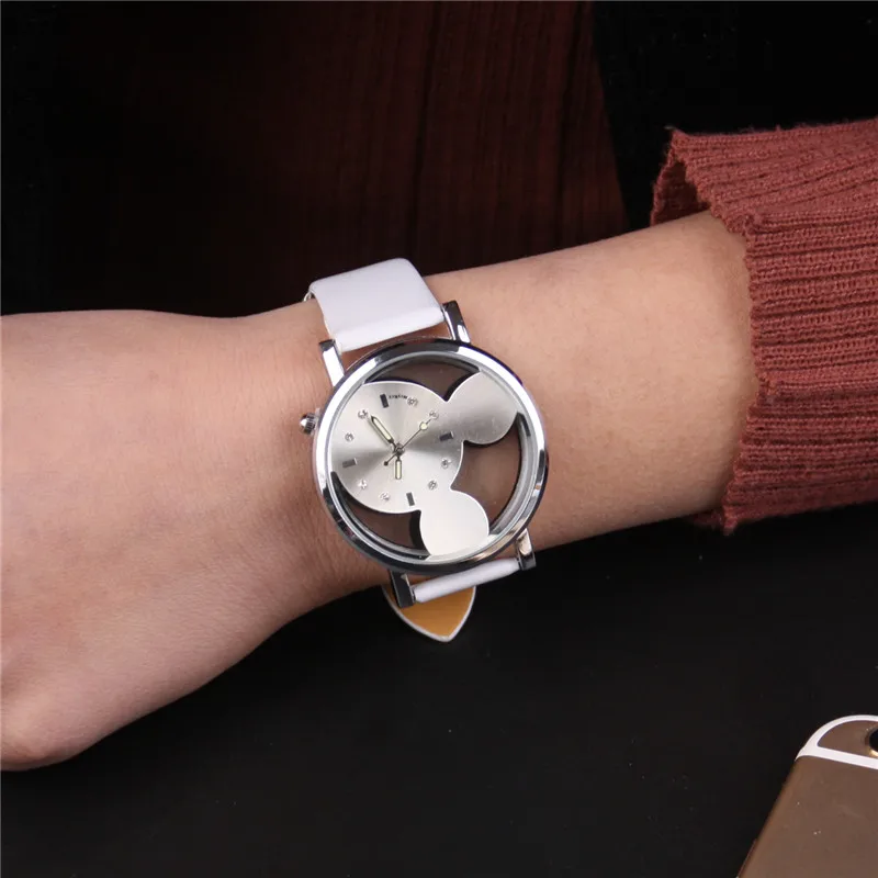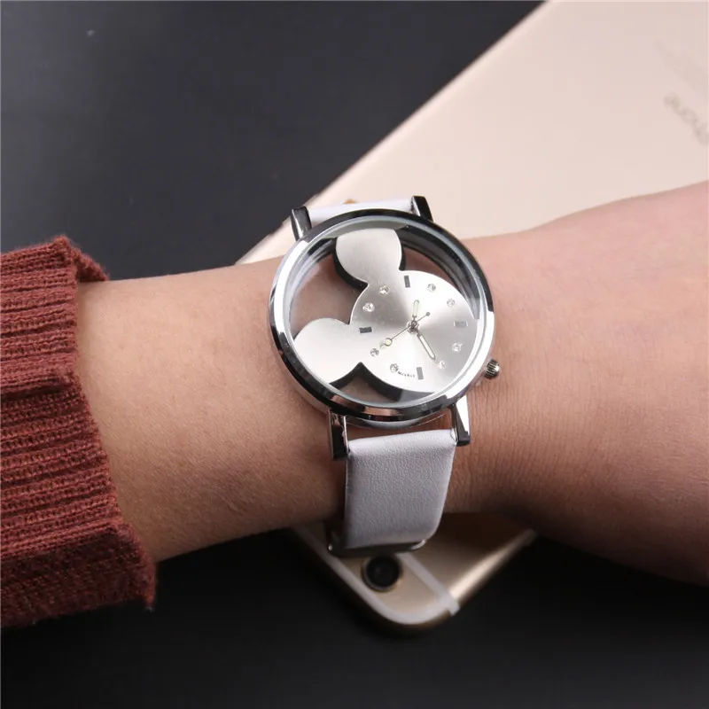 Часы наручные женские с мультяшным рисунком, модные роскошные с кожаным ремешком, 2020