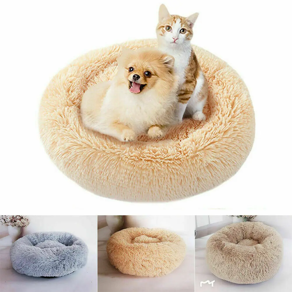 Круглые плюшевые кровати для кошек, плюшевые супер мягкие кровати д...