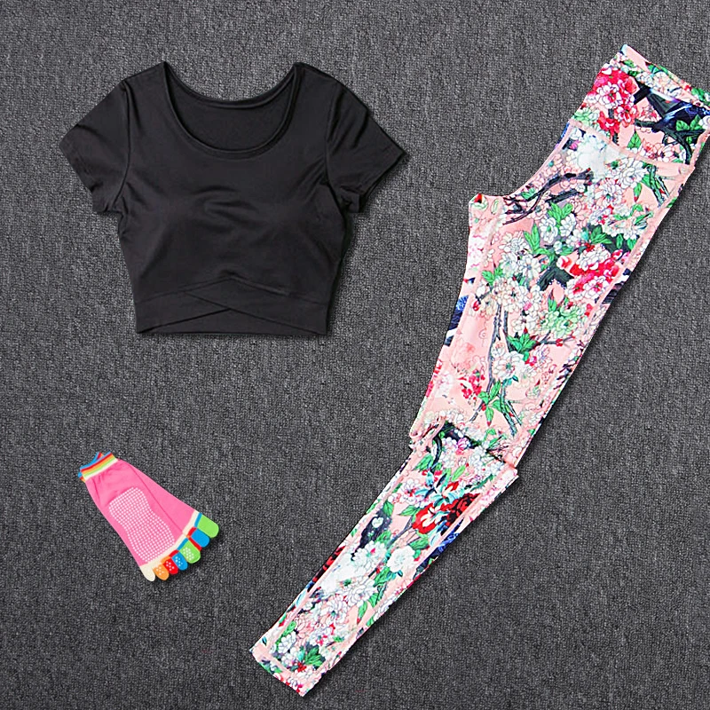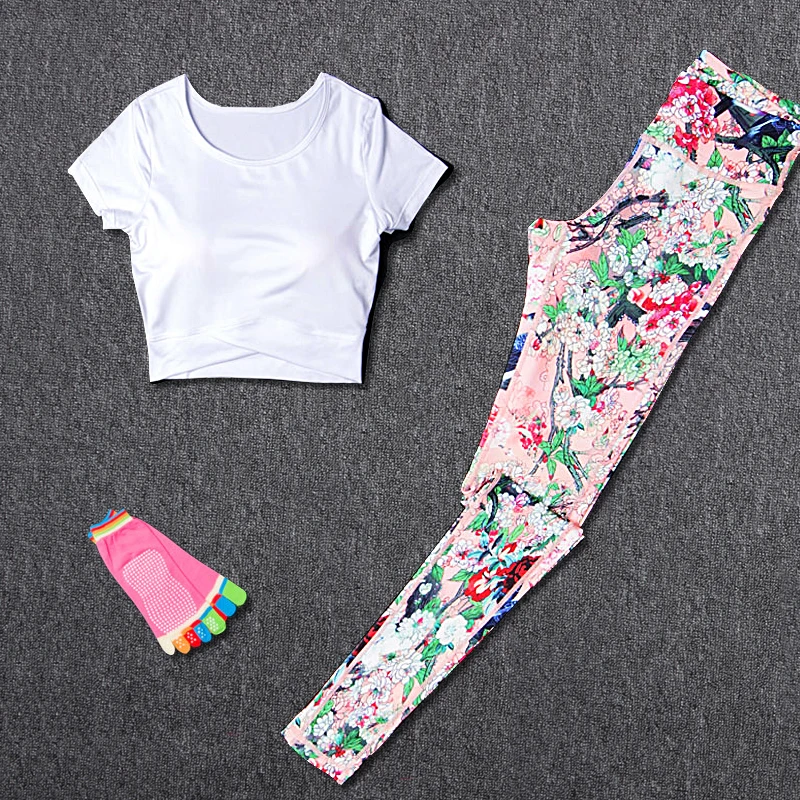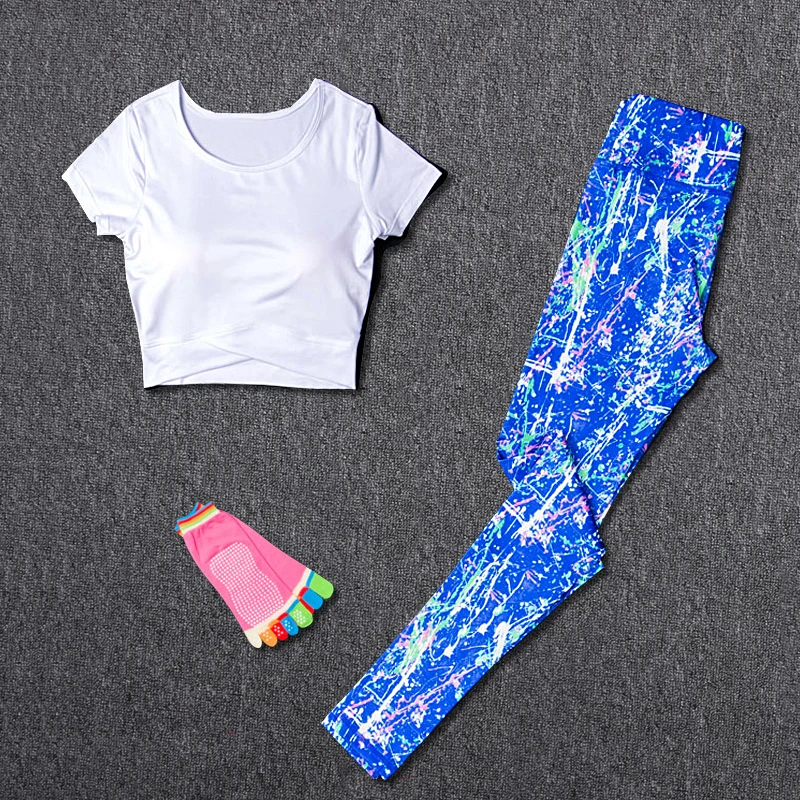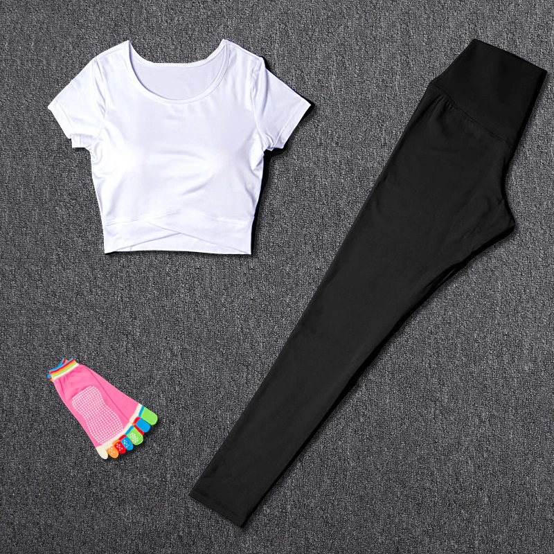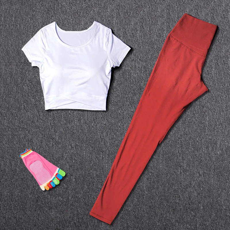 Женские комплекты для йоги, спортивный костюм для фитнеса, спортивная одежда, леггинсы для бега, носки для йоги, Спортивная футболка, спортивные комплекты для тренажерного зала, спортивная одежда