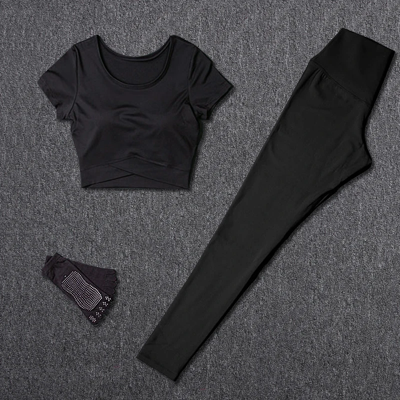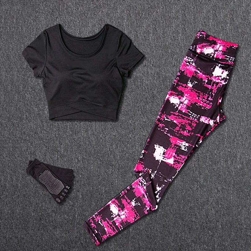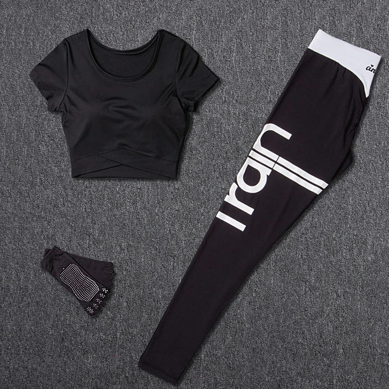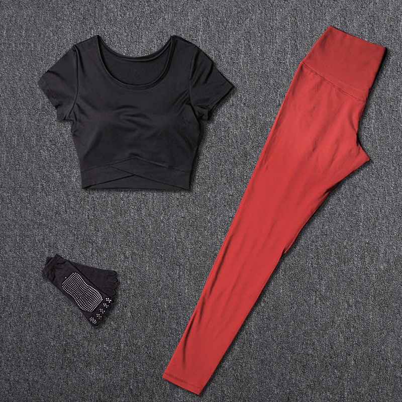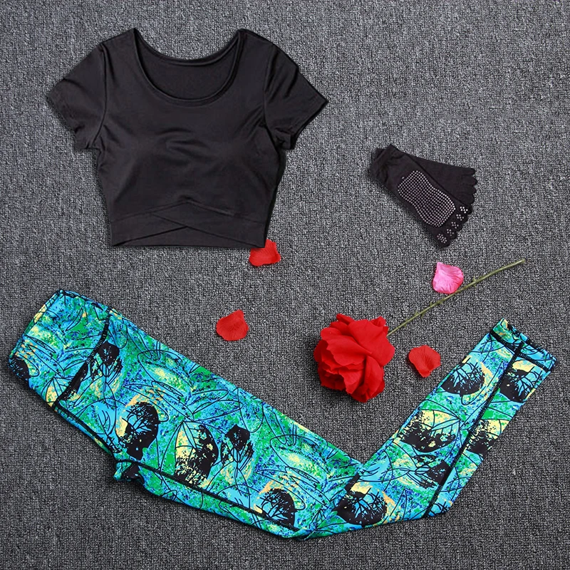 Женские комплекты для йоги, спортивный костюм для фитнеса, спортивная одежда, леггинсы для бега, носки для йоги, Спортивная футболка, спортивные комплекты для тренажерного зала, спортивная одежда