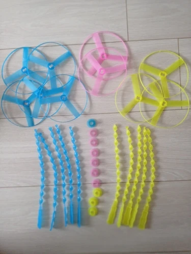 К доставке вопросов нет - приехало всё довольно быстро, около двух недель ждали. То, что палки кривые - ожидаемо, продавец предупреждал что упаковывает так себе. Но комплектность.... Цвета рандомно, т.е. как повезет - ладно, и тут предупреждали. НО БЛИН!!! Если ты кладешь одни жёлтые и синие палки - так положи ж ты к ним запчасти соответствующих цветов!!!! Нет же ж: у нас пять жёлтых палок, пять синих, при этом синих вентиляторов пять (тут вроде угадал), жёлтых - три, и нахрена то два РОЗОВЫХ. Ну и запускатели в преимуществе своем розовые. Рука-лицо Не вертушки, а винегрет. За это только три звезды, мой китайский друг. Внимательнее как-то надо к комплектности относиться, внимательнее...