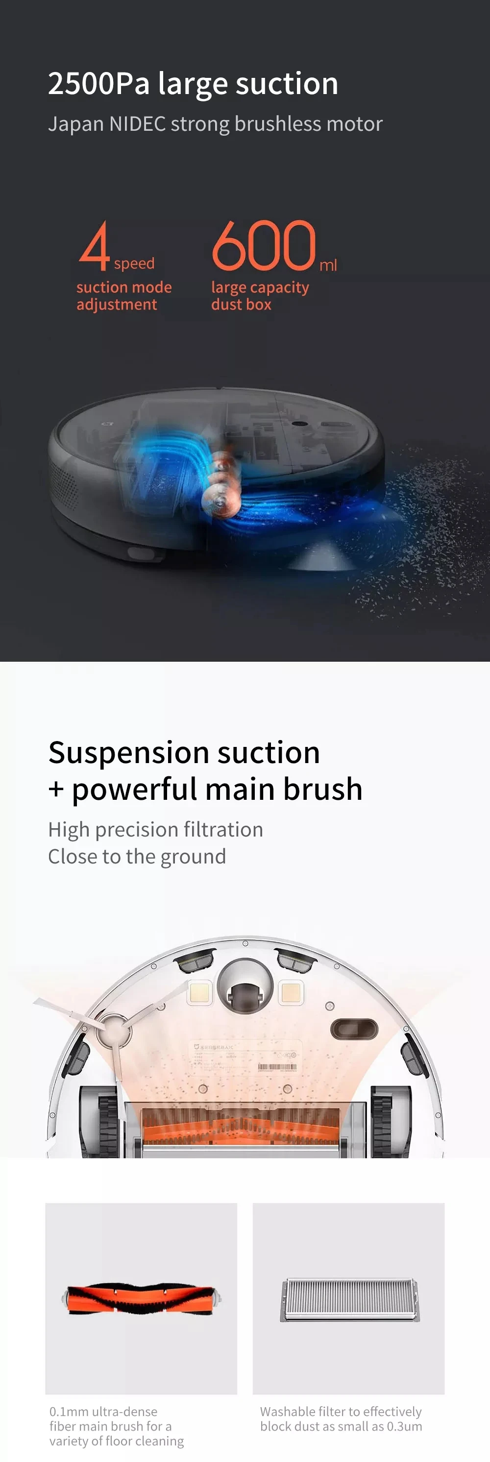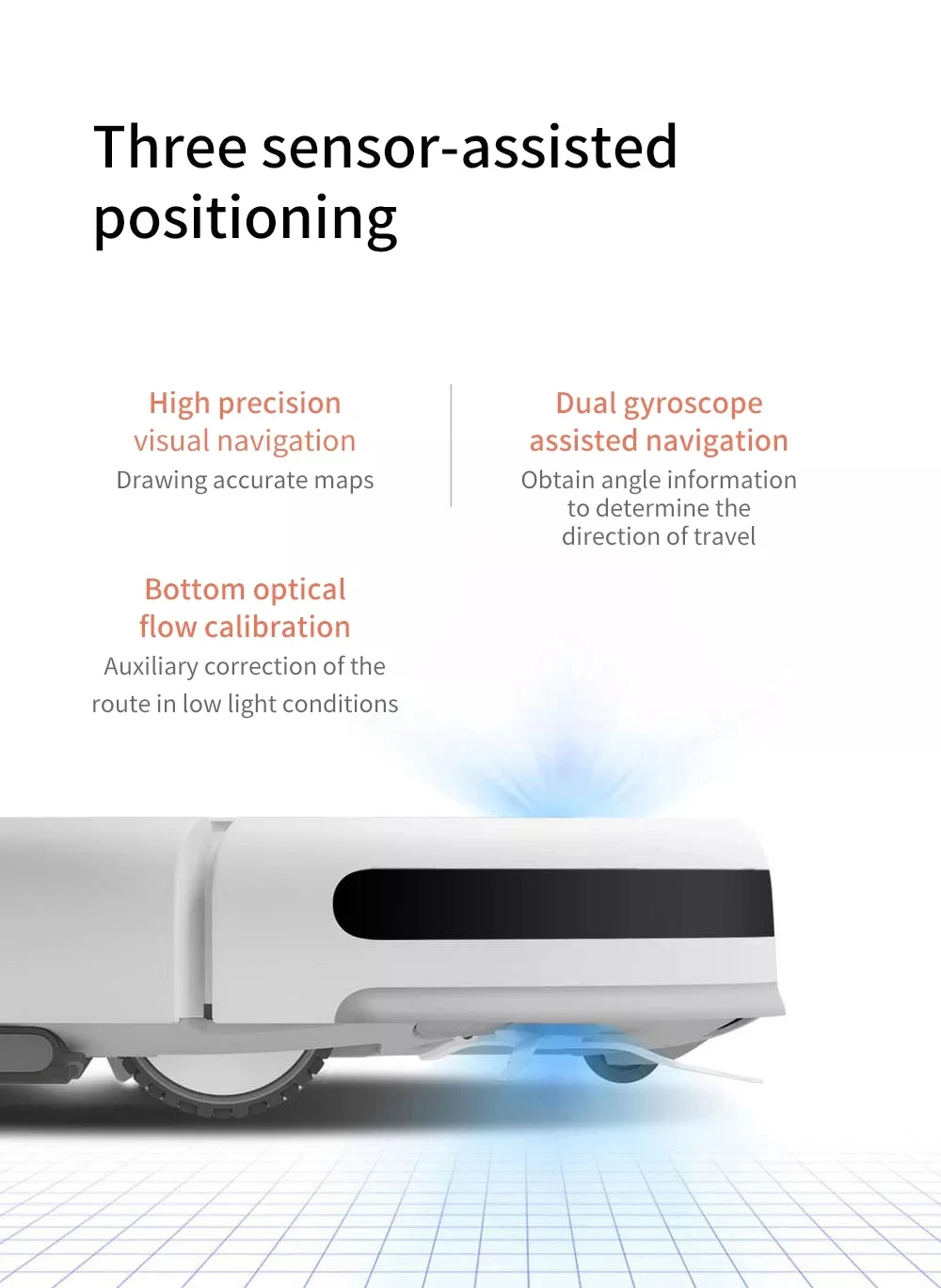 ● Визуальная динамическая навигационная система Быстро захватывает информацию о координатах, извлекает сложные пространственные особенности, поддерживает динамические исследования во время путешествий, более точно и эффективно сопоставляет карты. ● Взьем + 4-х ядерный Процессор Более расчетное, способное найти точное положение робота в режиме реального времени и разумно нарисовать рабочий путь. ● 2500 ПА Мощное всасывание Оснащен бесщеточным Мотором, регулирует дизайн воздуховода, легко впитывает частицы пыли. ● Всасывание подвески + мощная основная щетка Присоска большого диаметра, близко к земле. ● Высокоточный датчик 15 типов разнонаправленных датчиков, чувствительных к различным комплексным условиям, легко избежать препятствий. ● 20 мм через препятствия, 8,2 см стройное тело Легко поднимается по порогу, рельсам, ковру, легко ложится на дно кровати, шкафа и дивана. ● Автоматическая зарядка Автоматически заряжается при менее 15% заряда батареи. Когда аккумулятор заряжается до 80%, вернитесь в положение отключения питания и продолжайте подметать. ● Резервуар для воды 200 мл Точное управление водой, влажное сопротивление-очиститель.