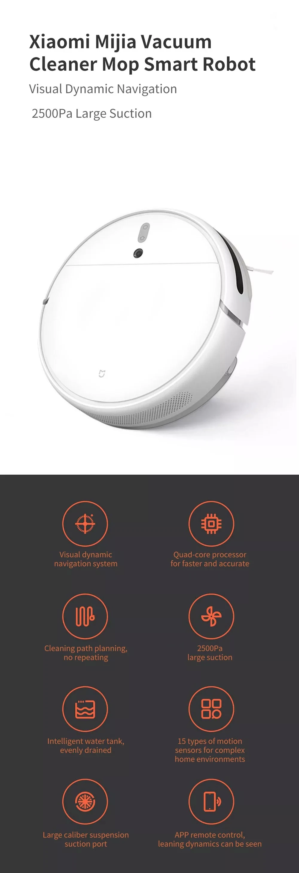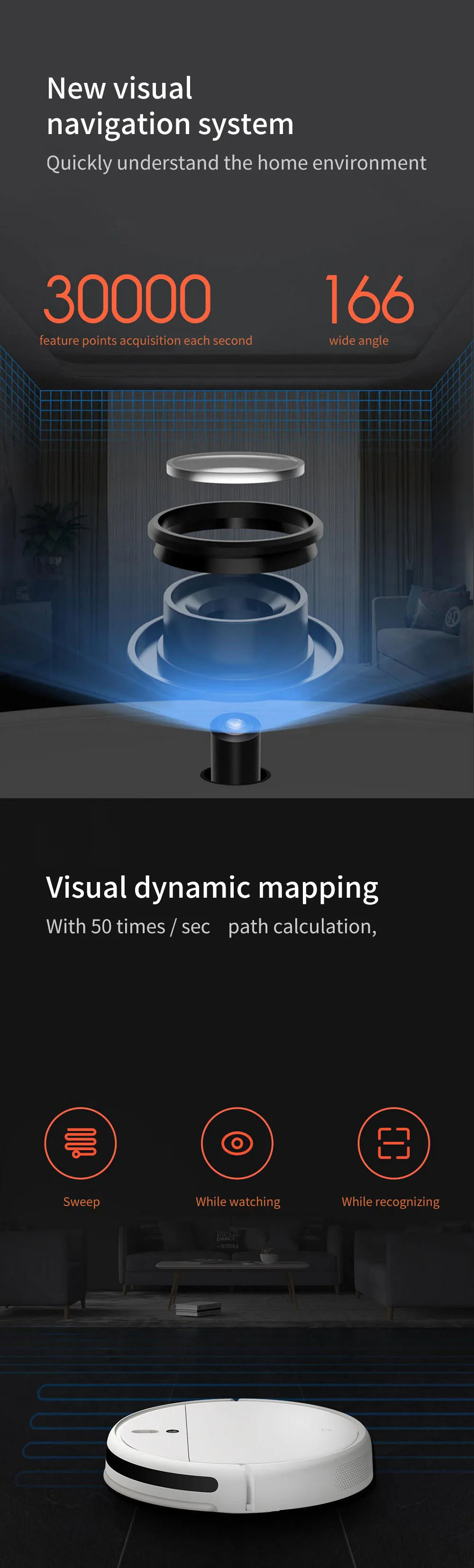 Оригинальный робот-пылесос Xiaomi Mijia Smart 2 в 1, швабра 1C с резервуаром для воды, визуальная динамическая навигация, 2500 па, управление через приложение Mi