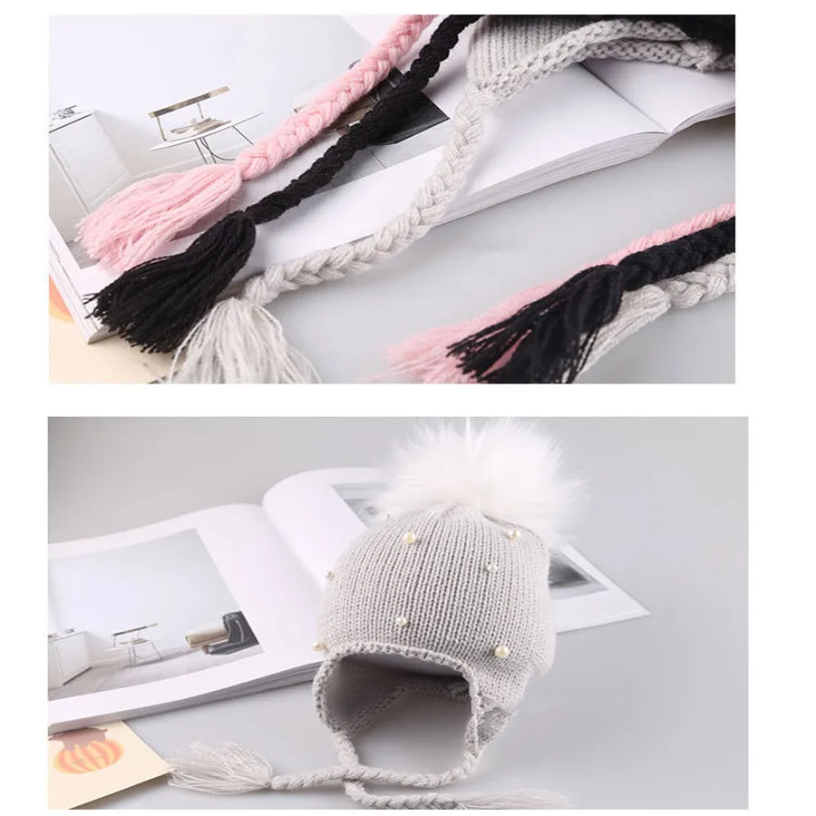 Детская шапка, большие шапки с помпоном, зимние вязаные теплые шапки для мальчиков и девочек, новая мода