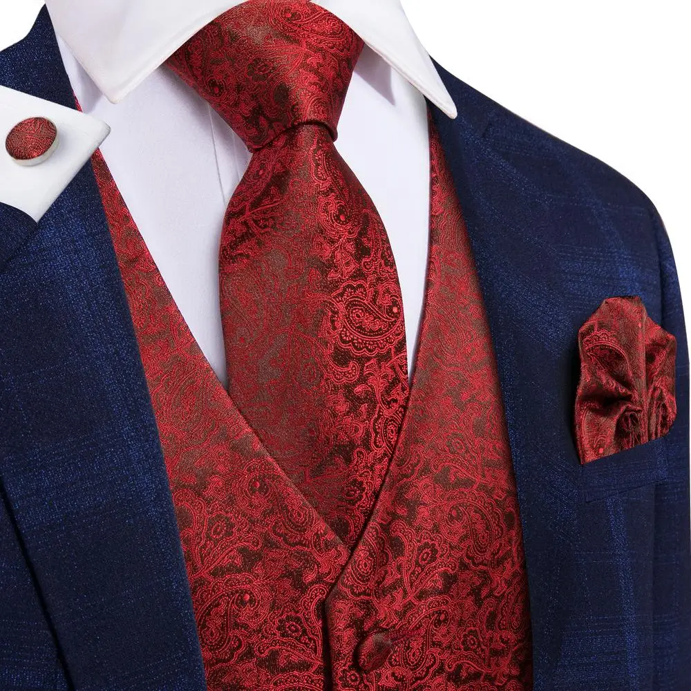Мужской Жаккардовый жилет Hi-Tie, темно-синий жаккардовый костюм с принтом пейсли, Шелковый костюм из 100% шелка, жилет для свадьбы, Официальный пиджак