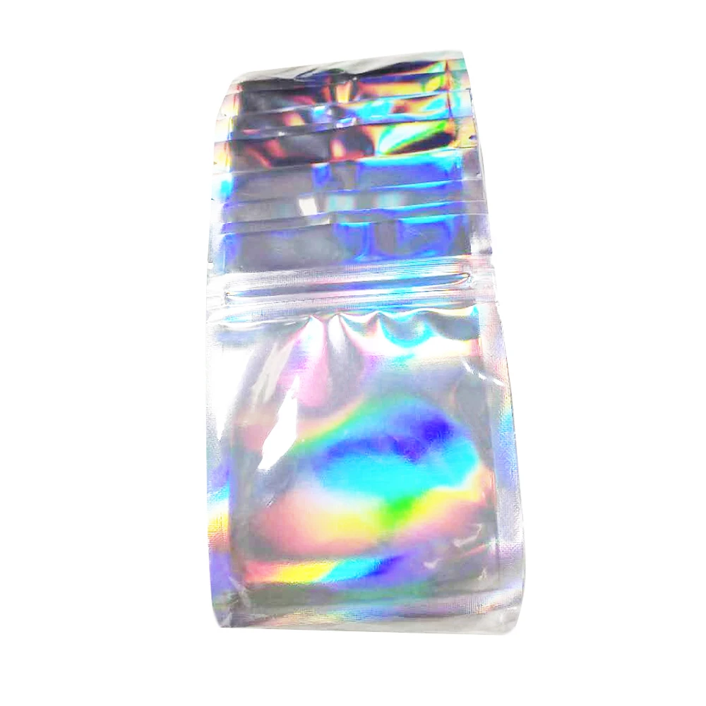 Плоская косметичка для ванной с молнией, односторонние Прозрачные голографические мини-пакеты из алюминиевой фольги на молнии, 100 шт., SML