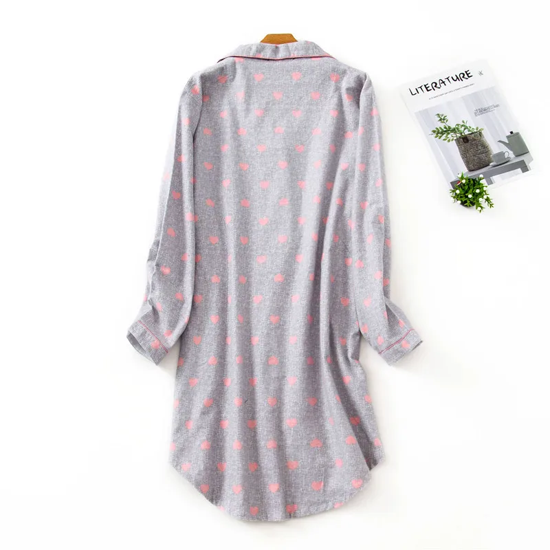 Женская ночная рубашка с длинным рукавом, 100% хлопок