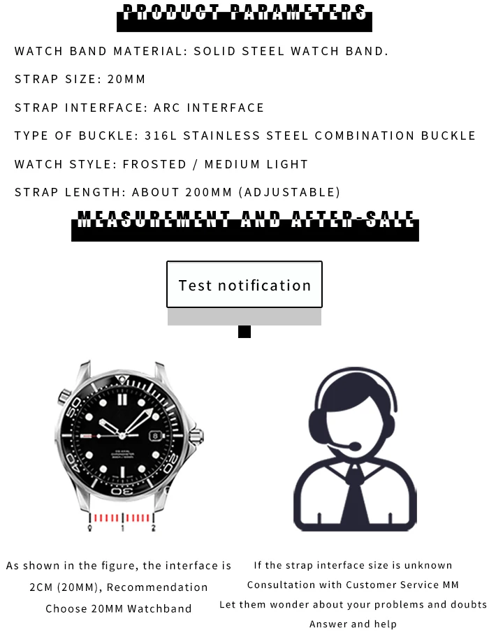 Высококачественный ремешок для часов из нержавеющей стали 904L, 20 ...