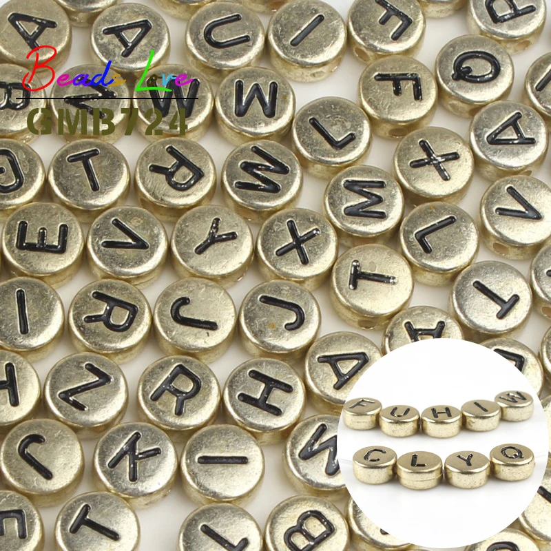 4*7 мм 100 шт золотые смешанные буквы круглые акриловые бусины плоский Алфавит свободные бусины для самостоятельного изготовления ювелирных изделий браслет оптом